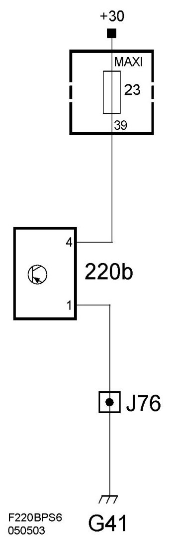 B+ feed to control unit pin 4 from fuse 23 (fuse board 22) and is connected to ground through pin 1 on grounding point G41.