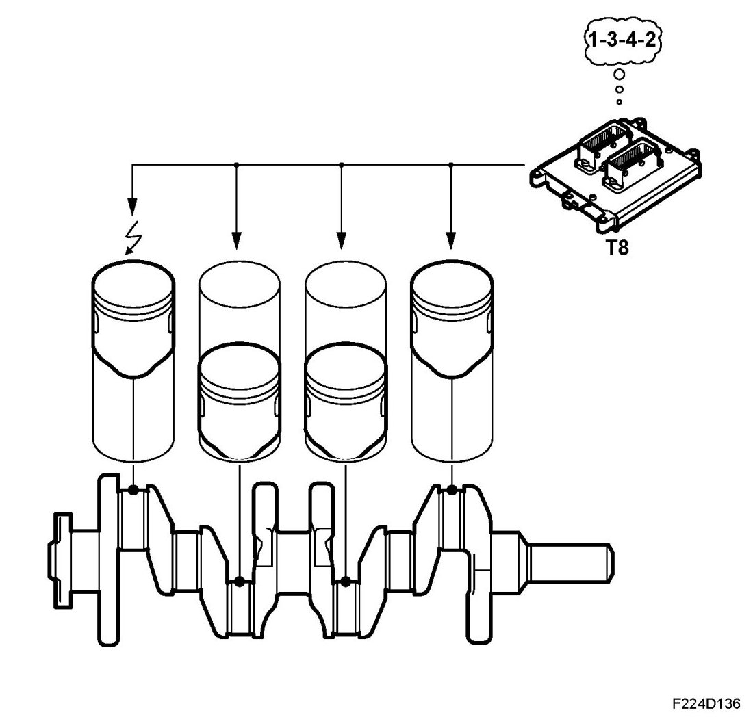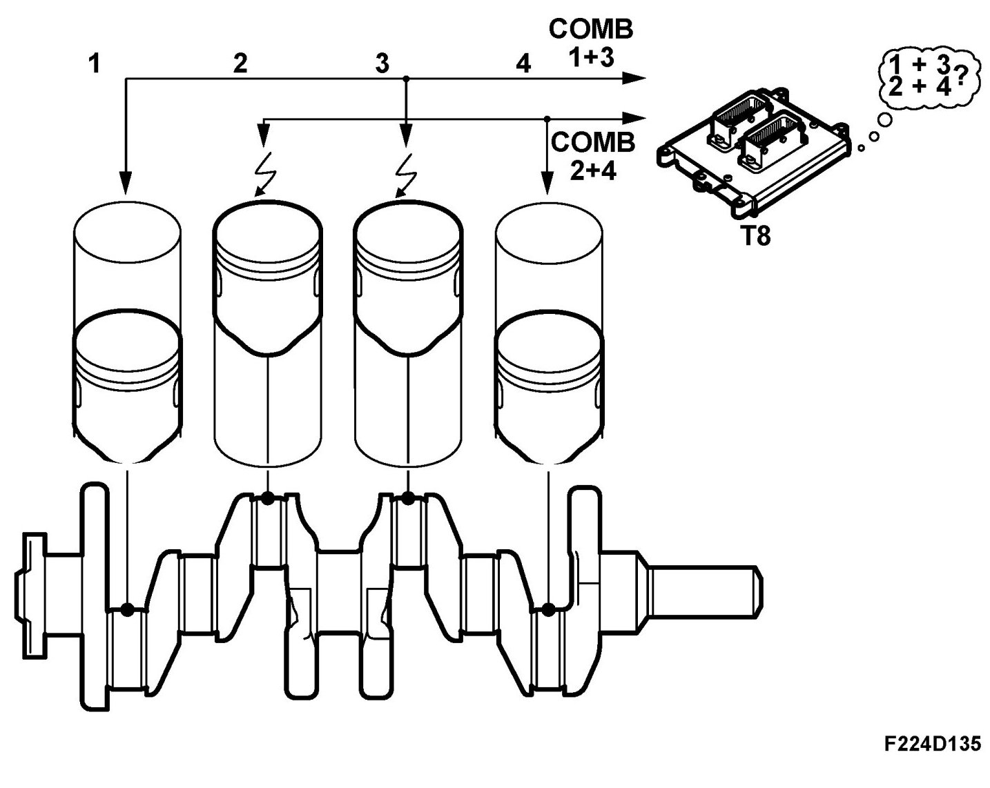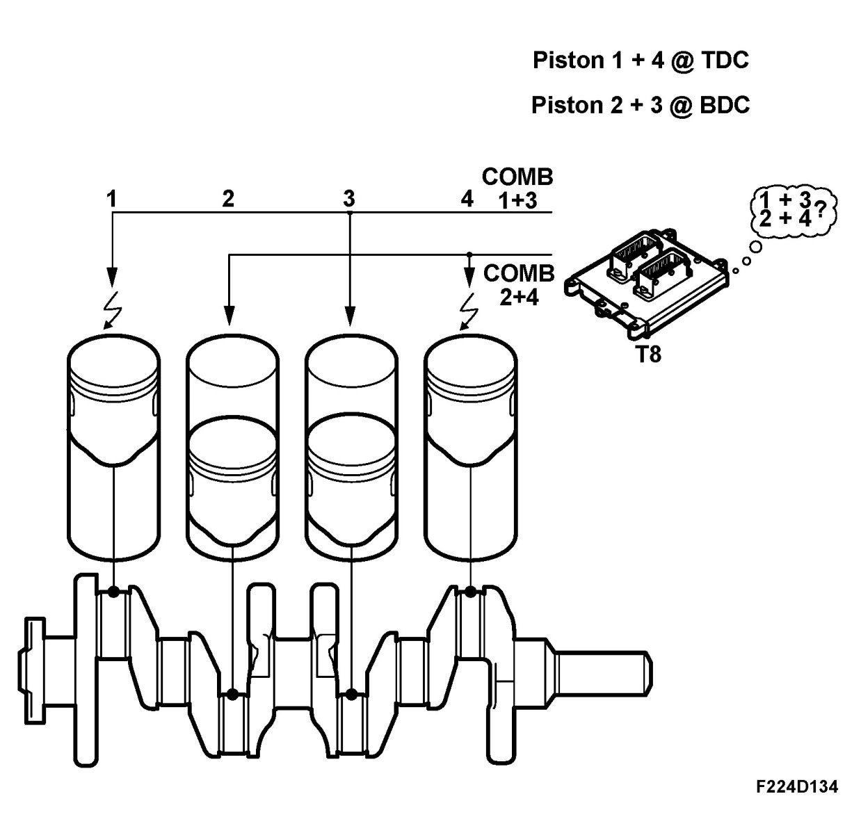 In order to synchronise the firing order, ECM must detect the result (combustion or not) after the simultaneous spark in cylinders 1/4 and 2/3 respectively.
