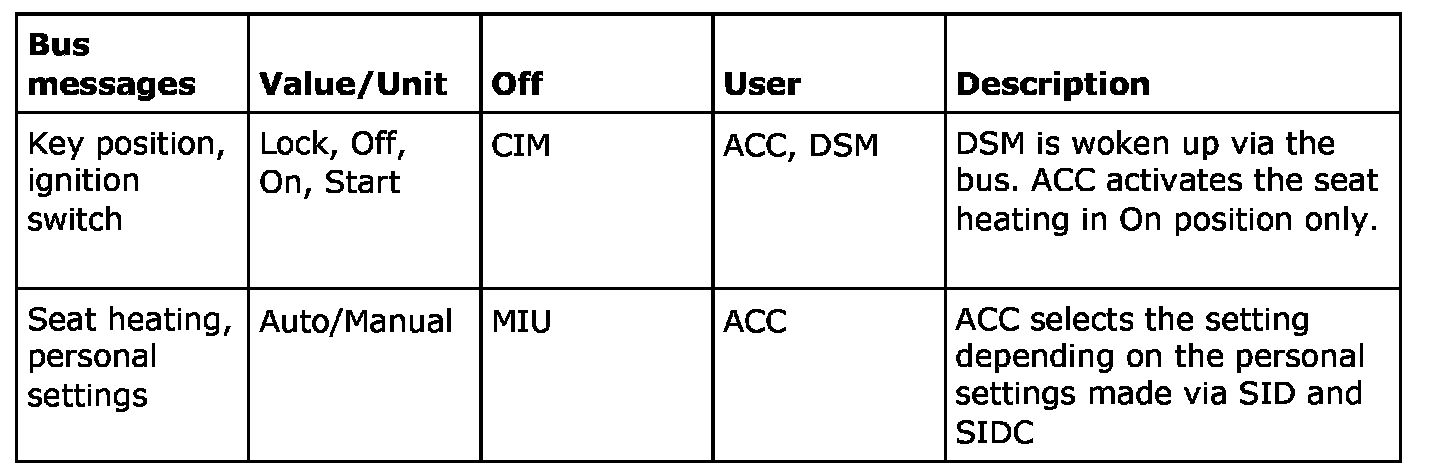 Bus Messages, Seats (DSM)