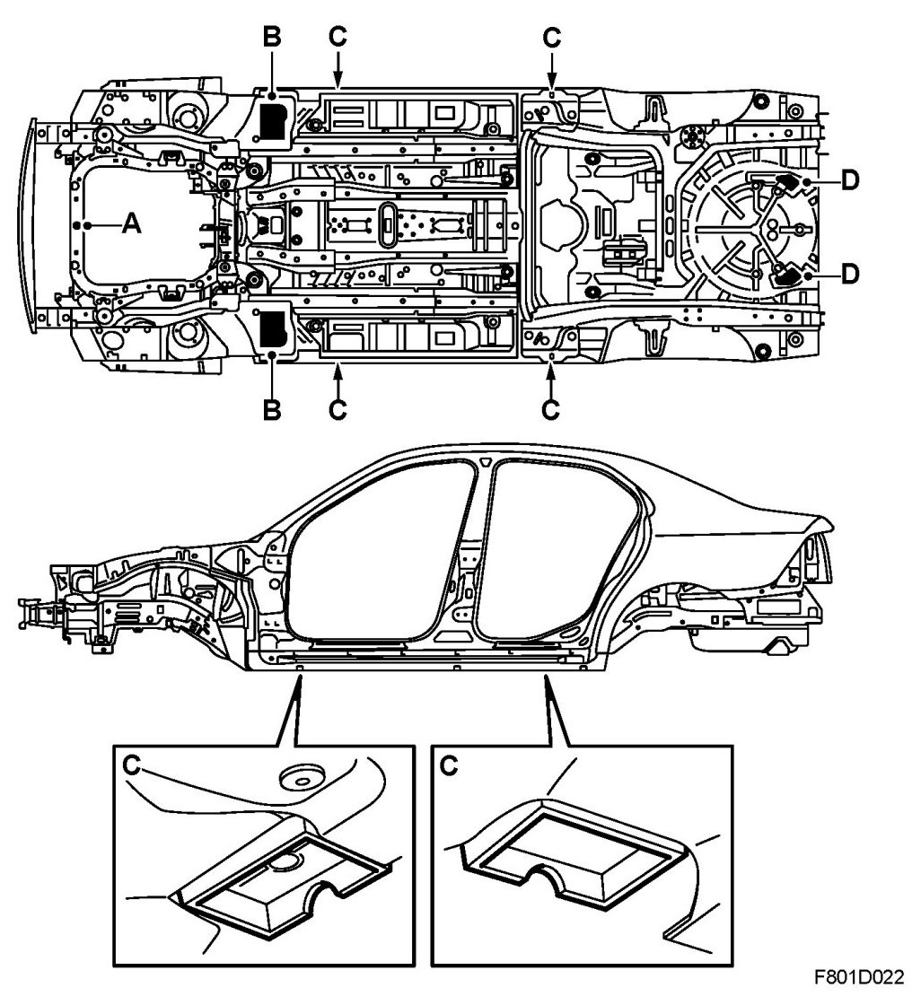 WARNING: If incorrect lifting or attachment points are used, the car may be displaced or fall from its raised position, which may result in serious damage to the car or serious personal injury.