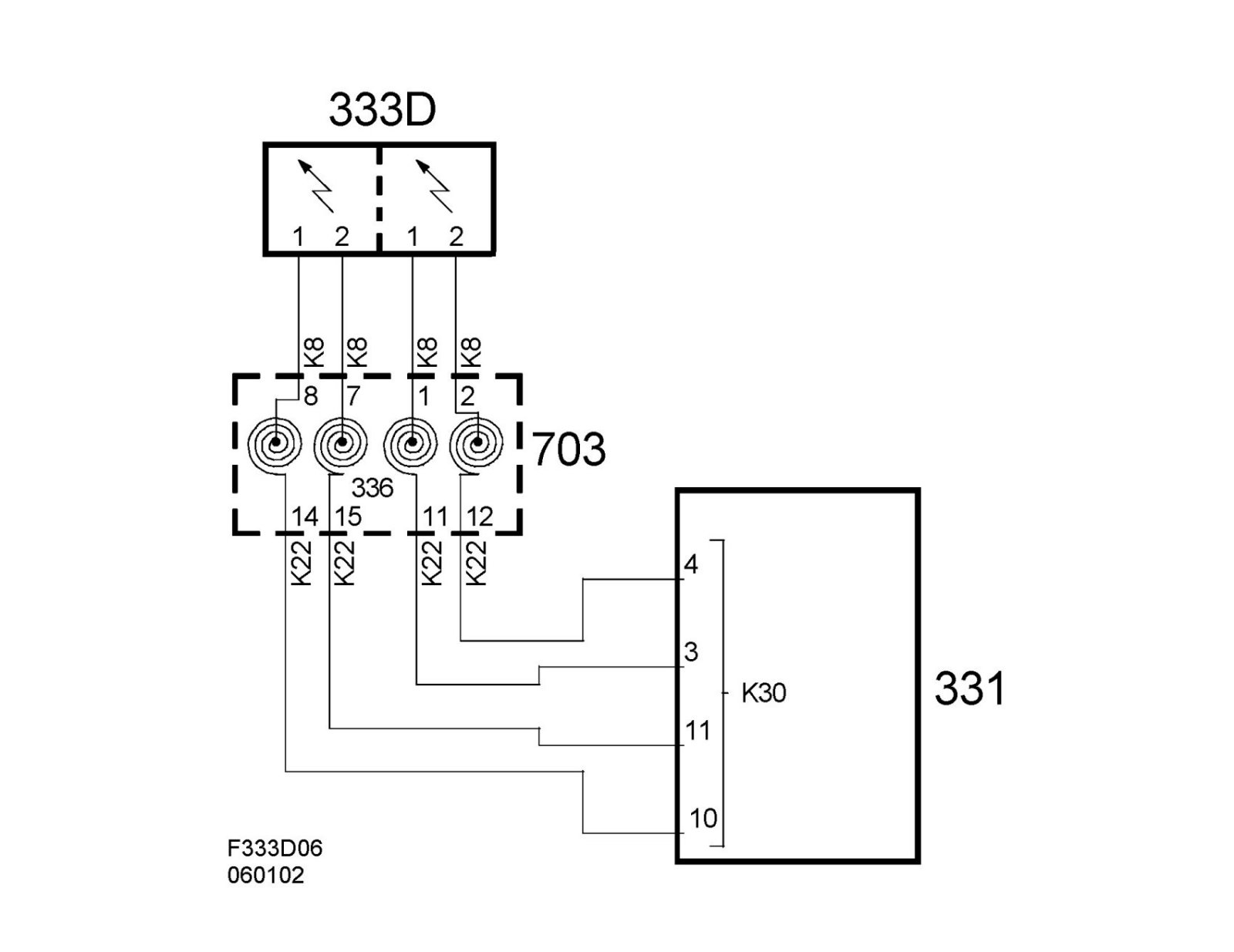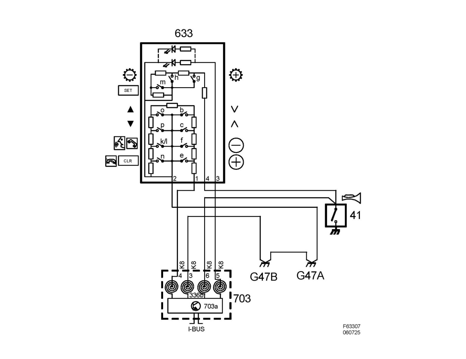 Wiring diagram, steering wheel contact unit, horn/switch