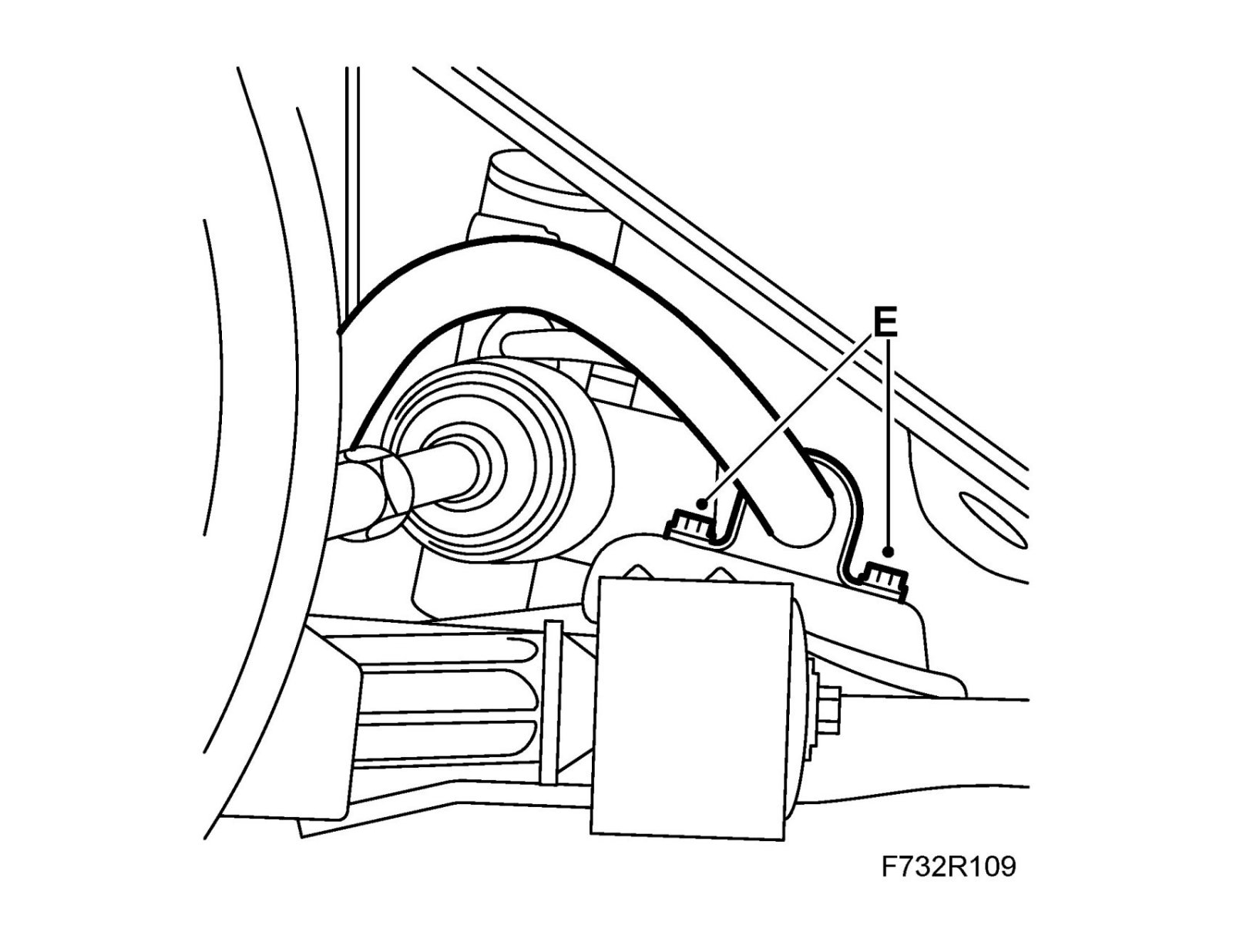 4. Fit the anti-roll bar (E) to the subframe. Use Threadlock, Loctite 242.