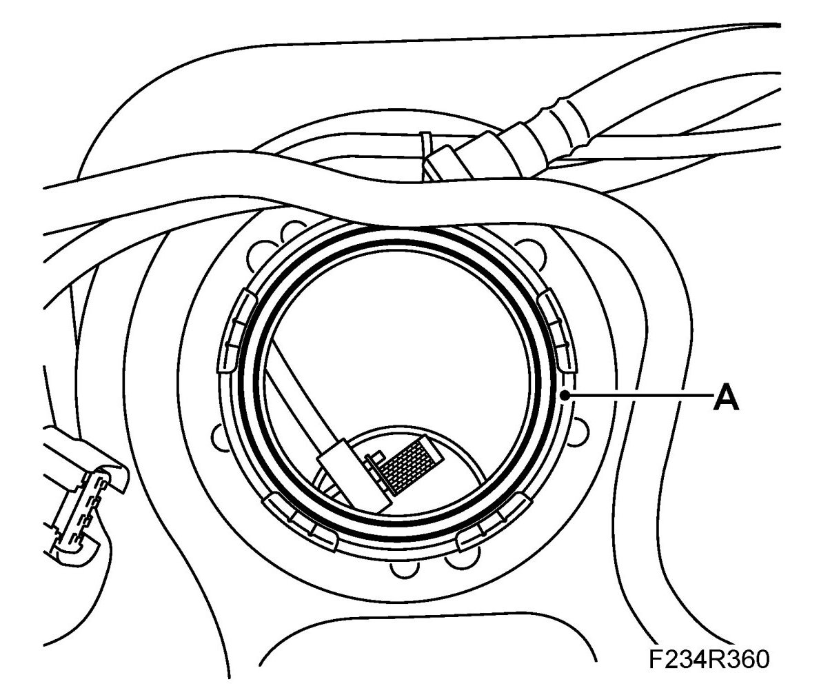 3. Fit the fuel level sensor by fitting the circlip and turn clockwise. Use tool EN- 49232 Removal/fitting tool, fuel tank.