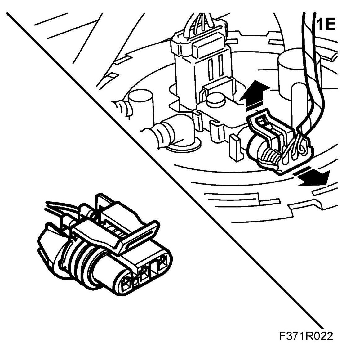 1.E. Lift up the locking tab to release the connector's lock.