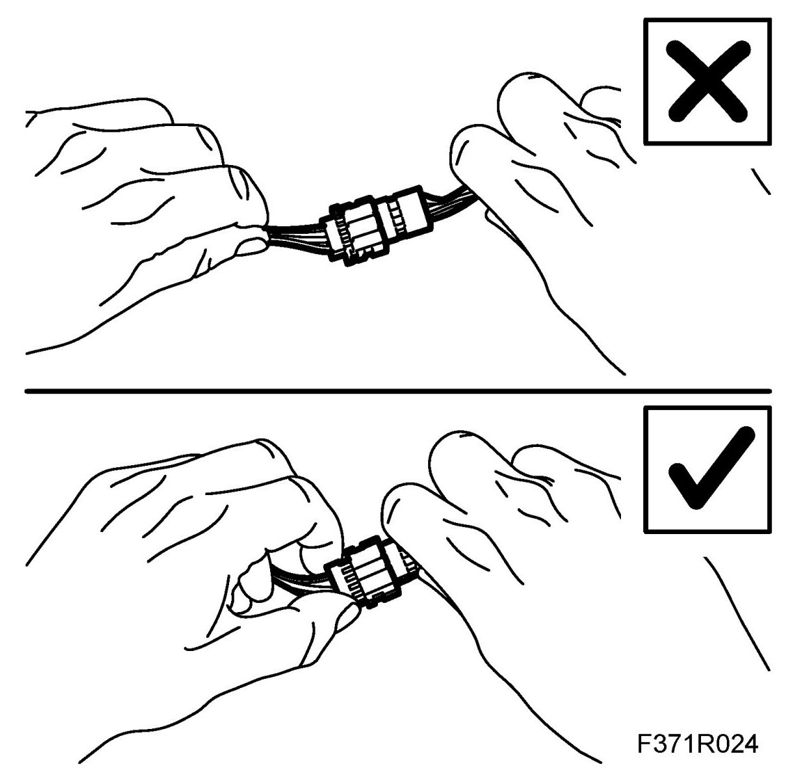 3. Never pull the wiring harness when removing the connector.