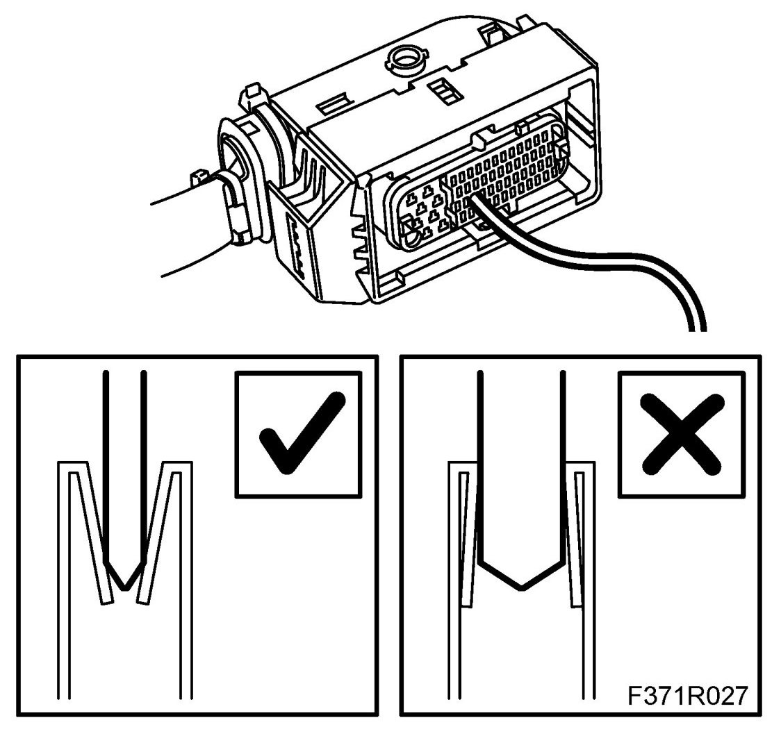 - Insert the test cable's pins in the connector's pins to assess the clamping force on the relevant pins. Poor clamping force on the connector's pins can cause connector play.