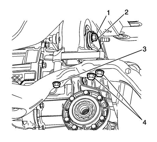 8. Install the ball joint fastener (2) to the ball joint and tighten to 30 Nm (22 lb ft) plus an additional 130 degrees.