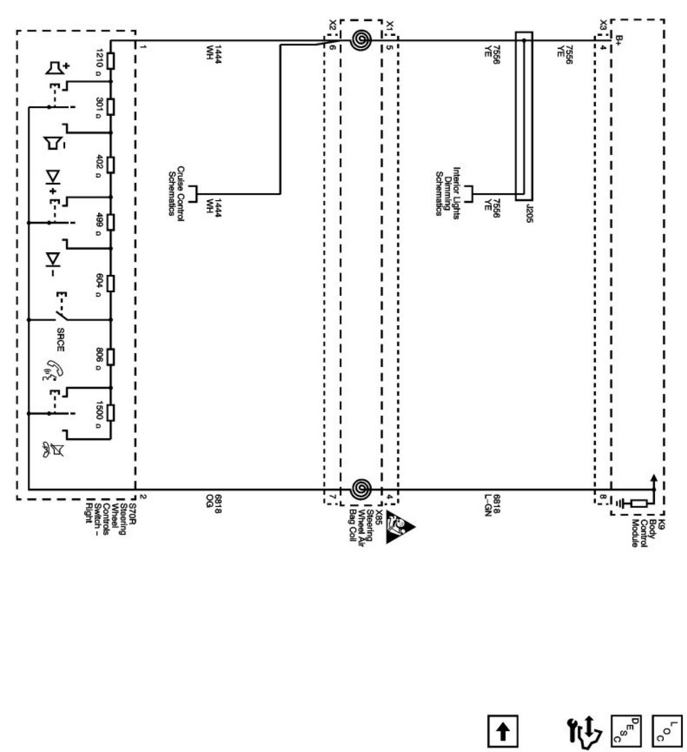 Power Supply Diagrams: The diagrams for the power supplies that may be feeding this system (+30, +15, +54, +X, and +B) ) can be found at Power and Ground Distribution diagrams. Electrical Diagrams