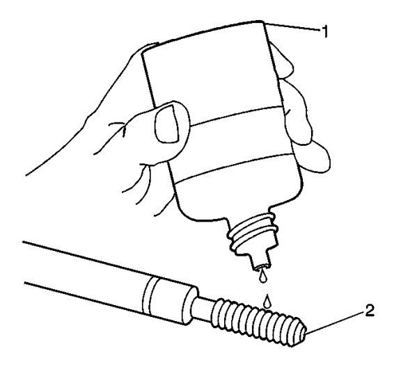 10. Apply threadlock sealant, EN 42385-109, LOCTITE 277(R) or equivalent (1) to the insert OD threads (2). Refer to Adhesives, Fluids, Lubricants, and Sealers for recommended sealant.