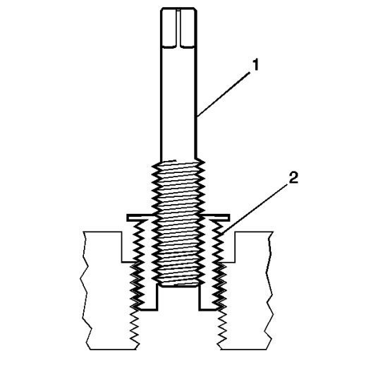 14. Inspect the insert (1) for proper installation (2) into the tapped hole.