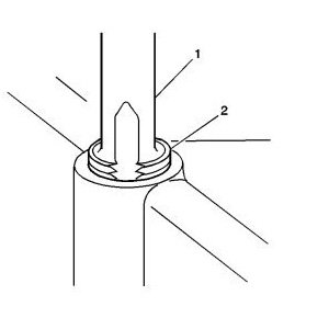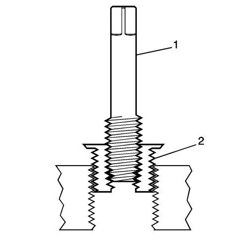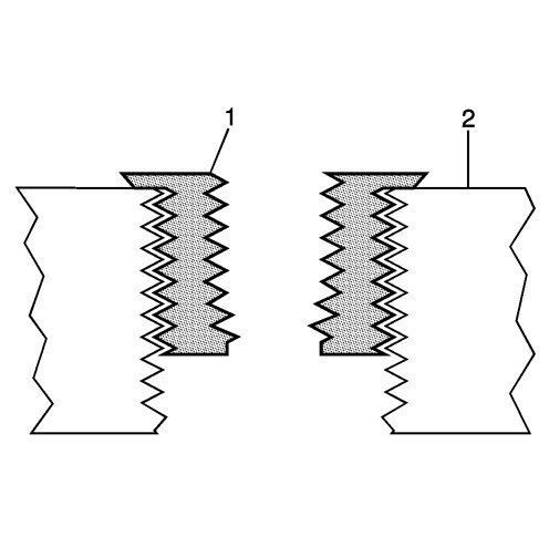 14. Inspect the insert (1) for proper installation (2) into the tapped hole.