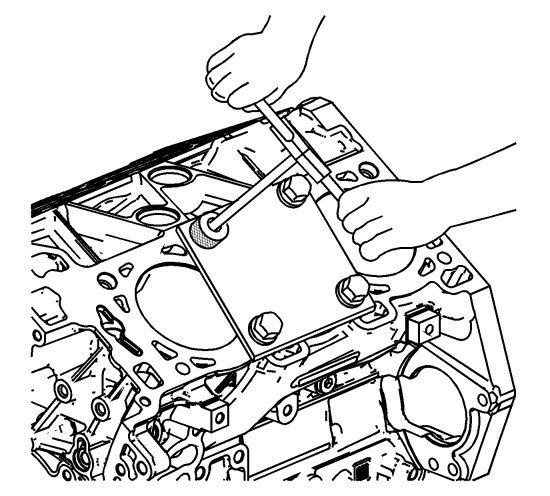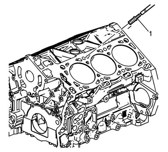 13. Spray cleaner into the tapped hole. Refer to Adhesives, Fluids, Lubricants, and Sealers for recommended cleaner.