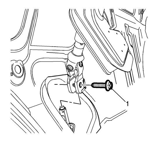 19. Connect the steering shaft coupling to the steering gear and install the bolt (1). Refer to Intermediate Steering Shaft Replacement.