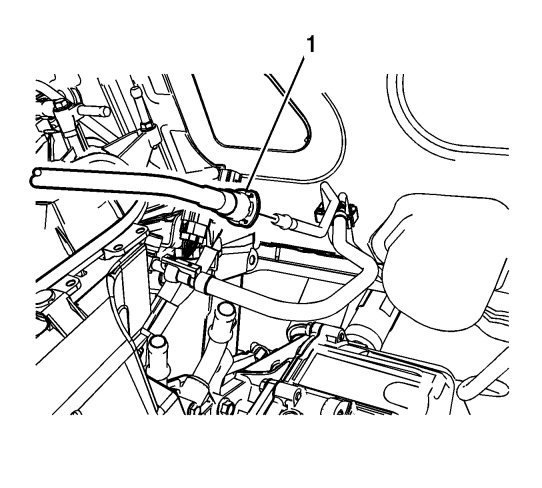 27. Disconnect the evaporative emission line (1). Refer to Plastic Collar Quick Connect Fitting Service