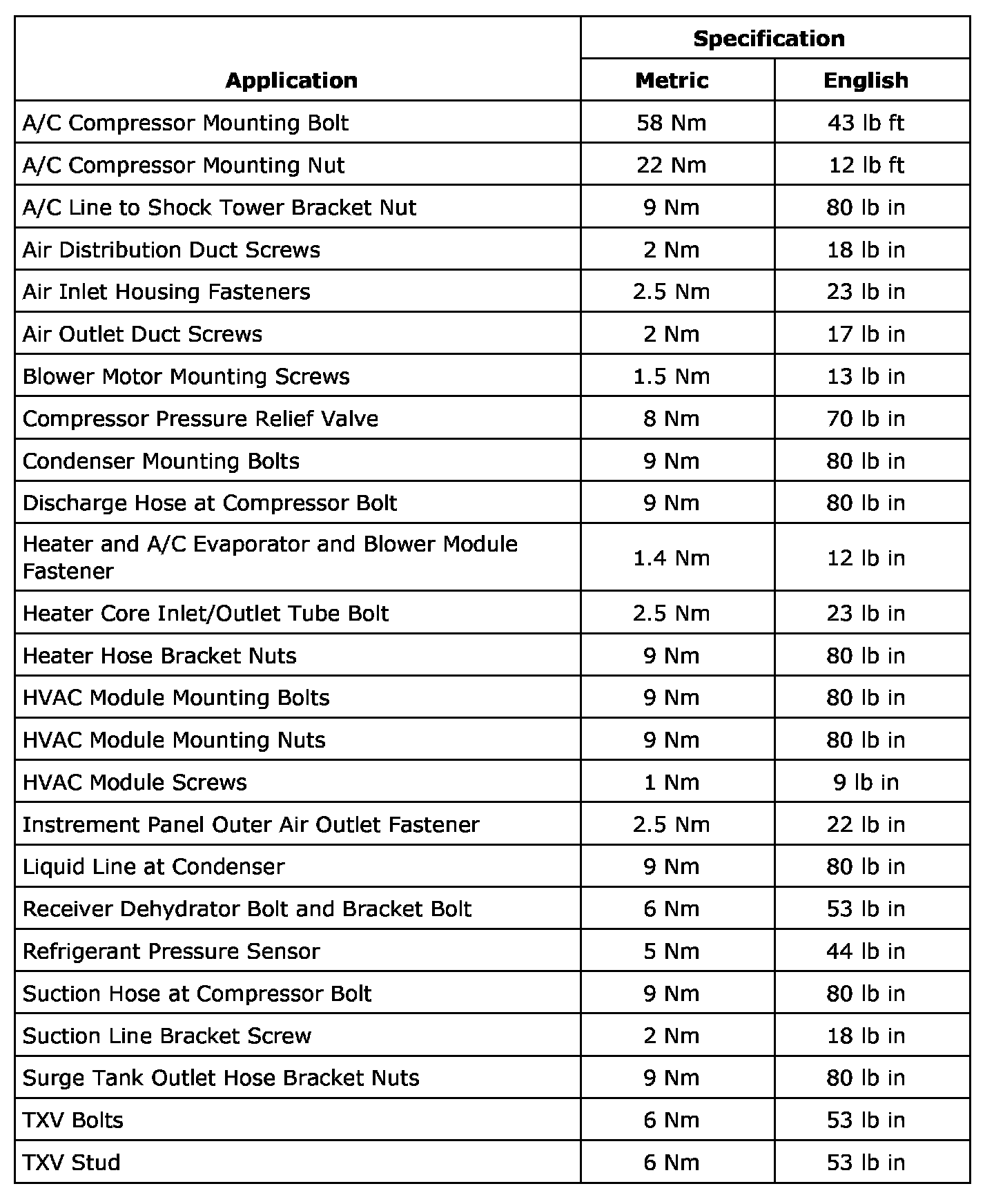 Fastener Tightening Specifications