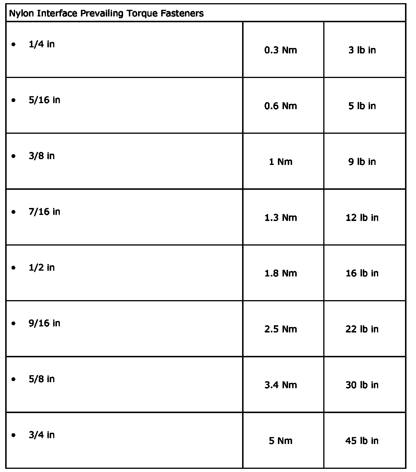 Metric Prevailing Torque Fastener Minimum Torque Development