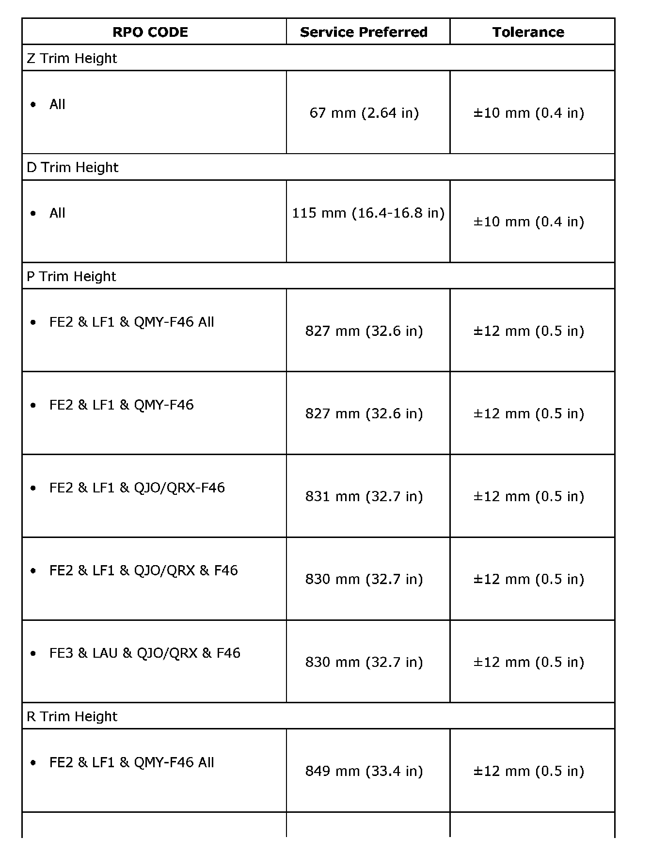 Trim Height Specifications