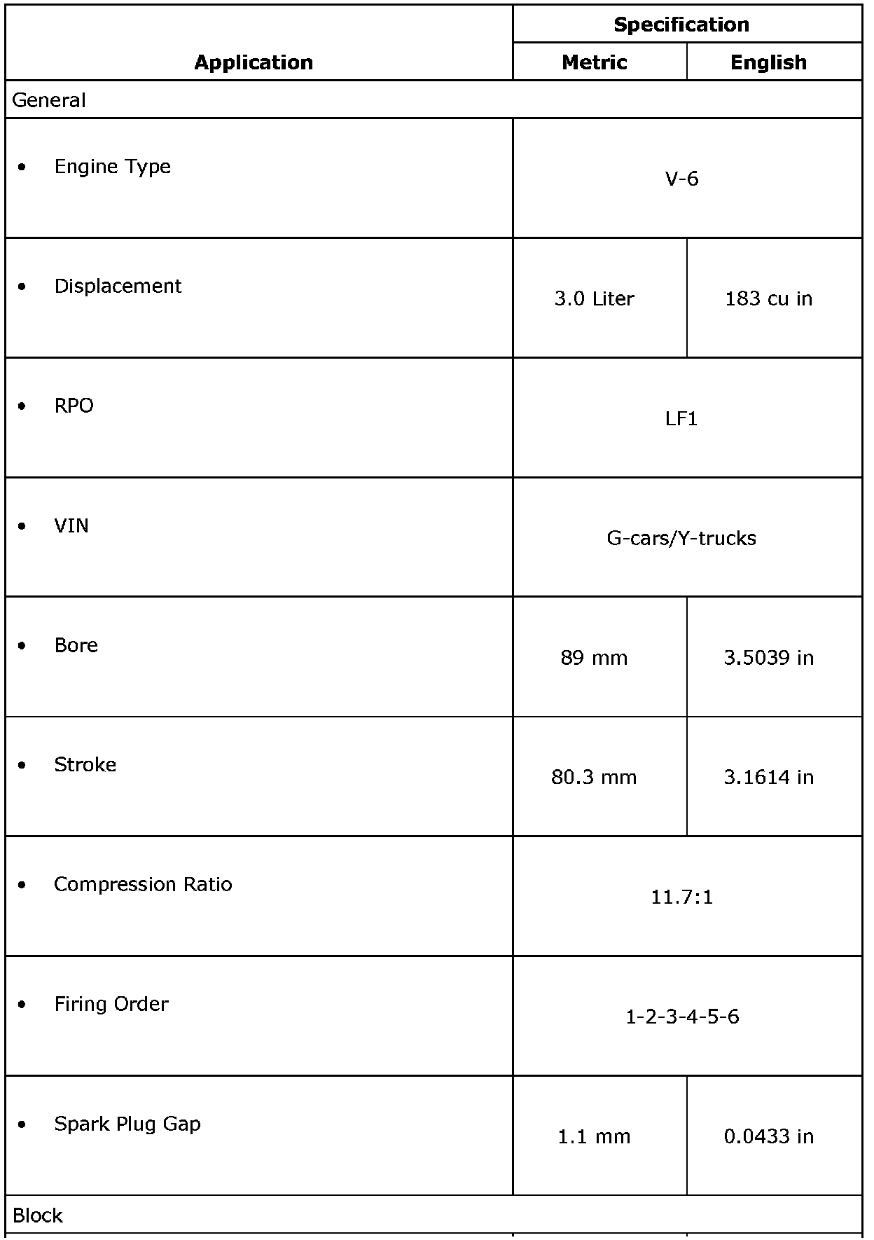 Engine Mechanical Specifications (LF1)