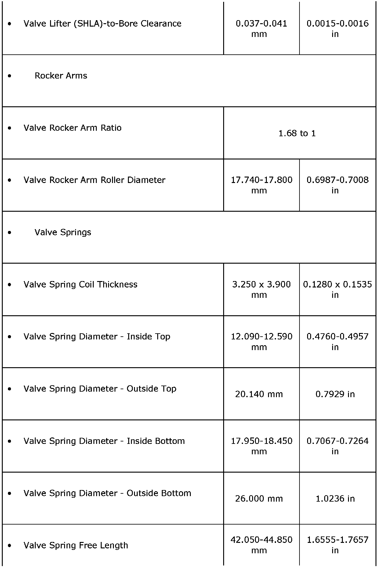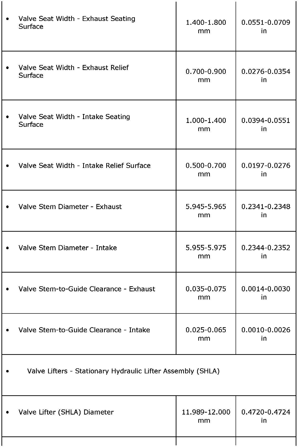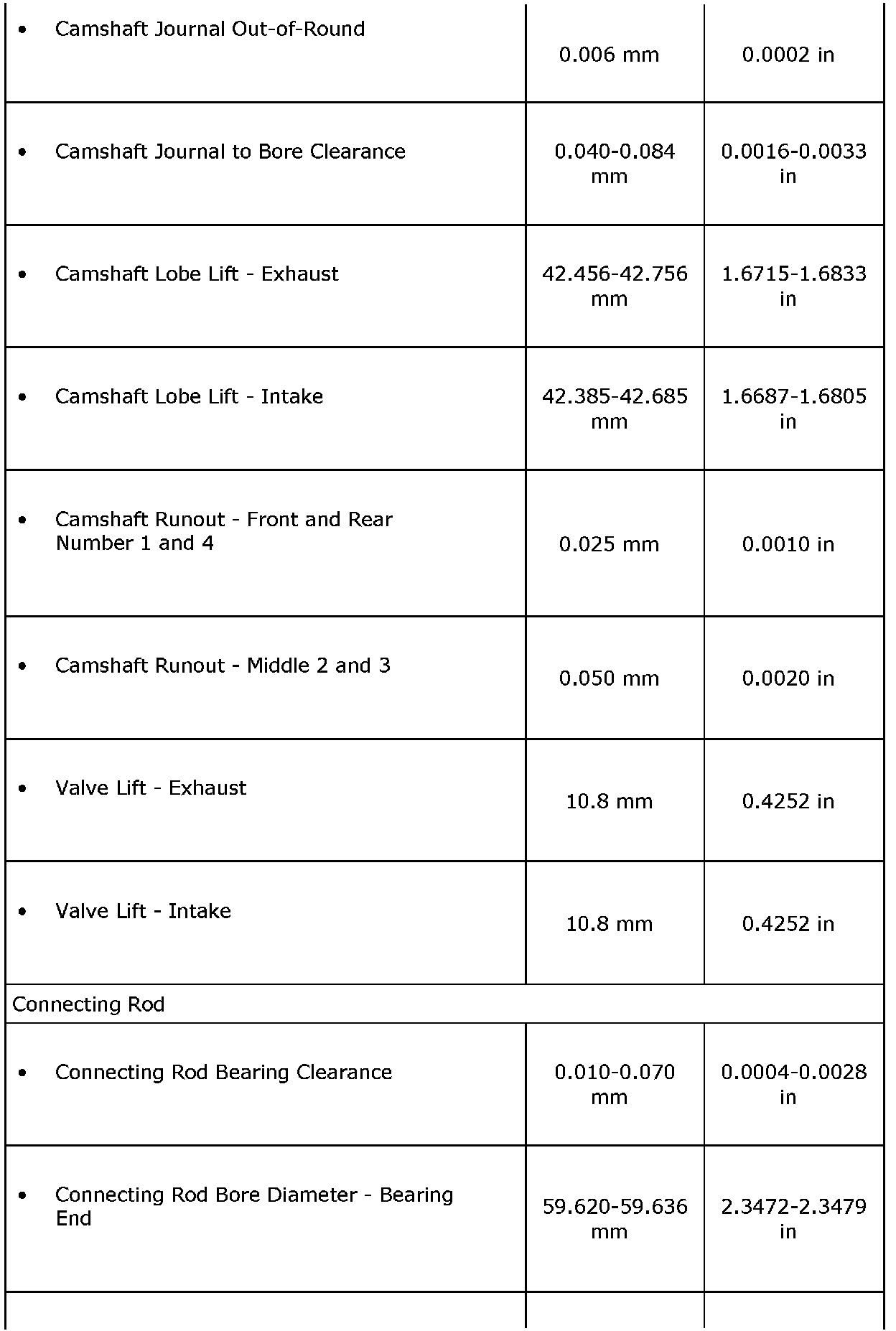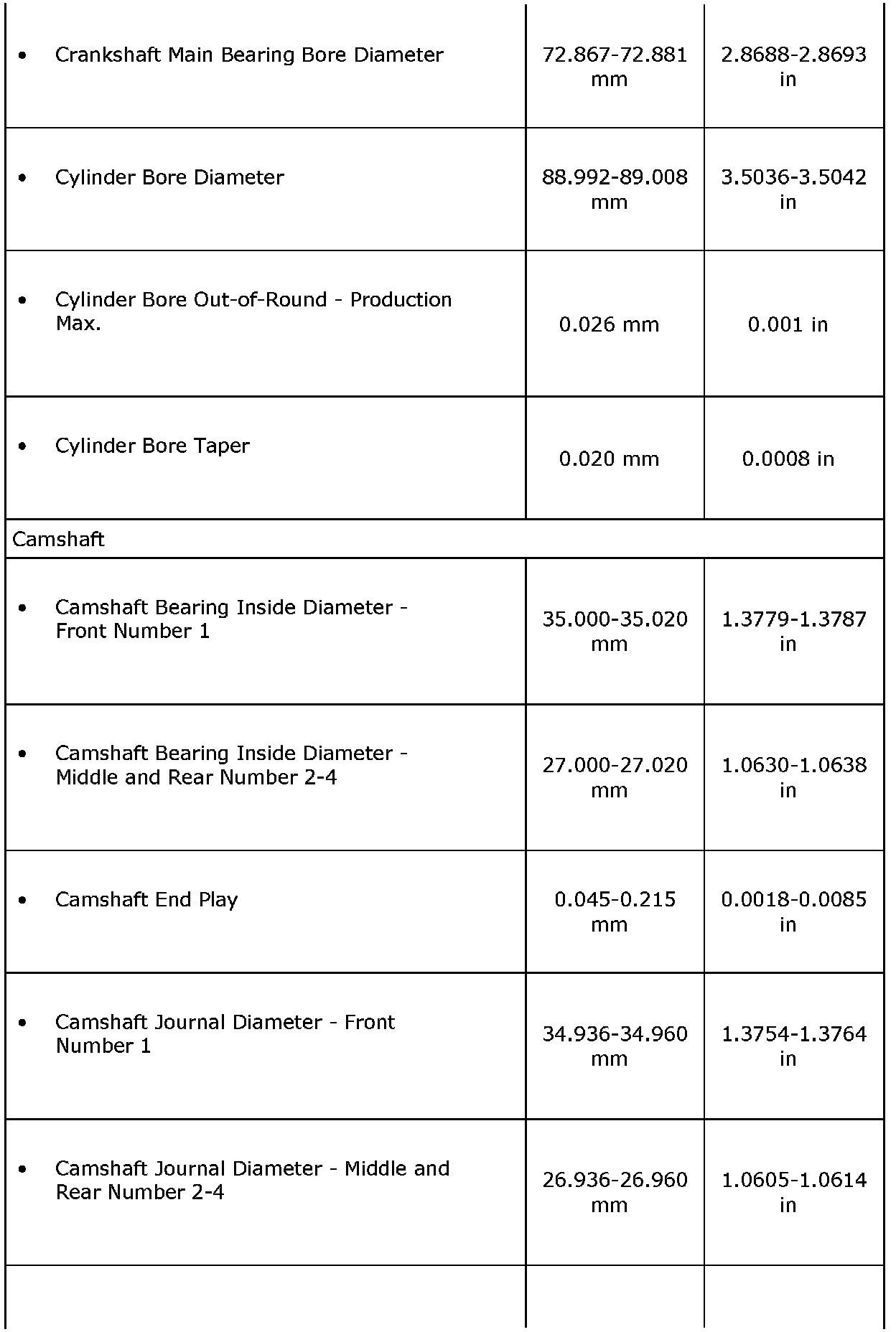 Engine Mechanical Specifications