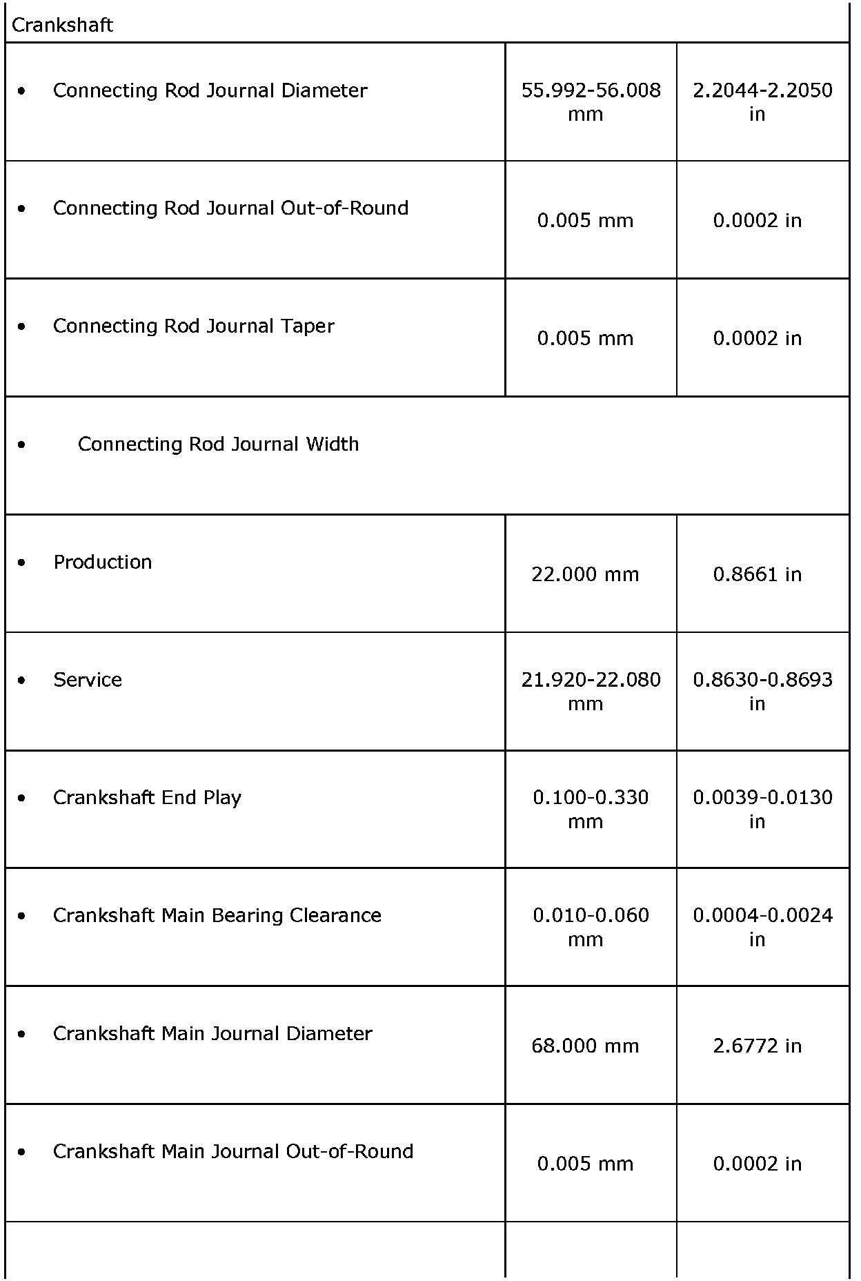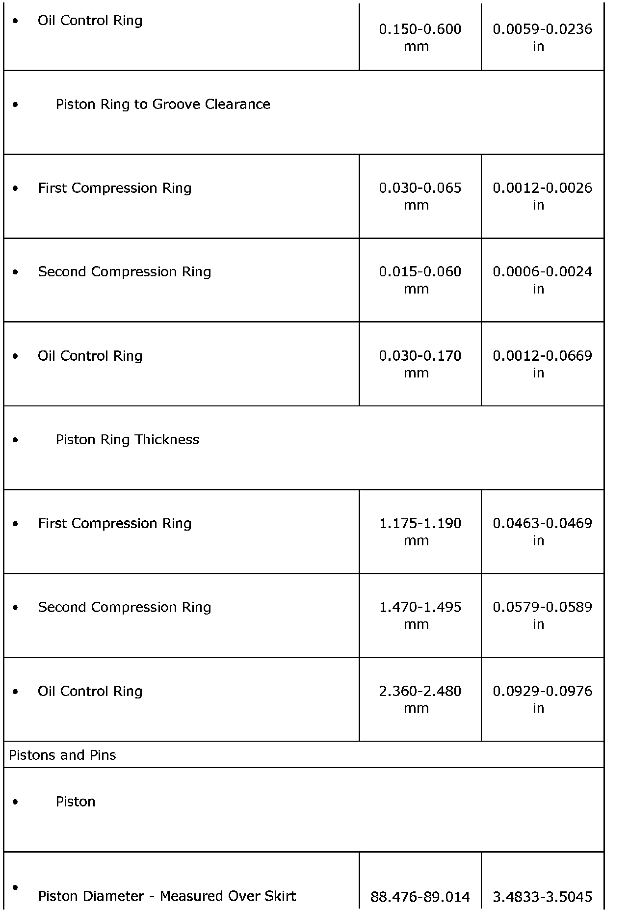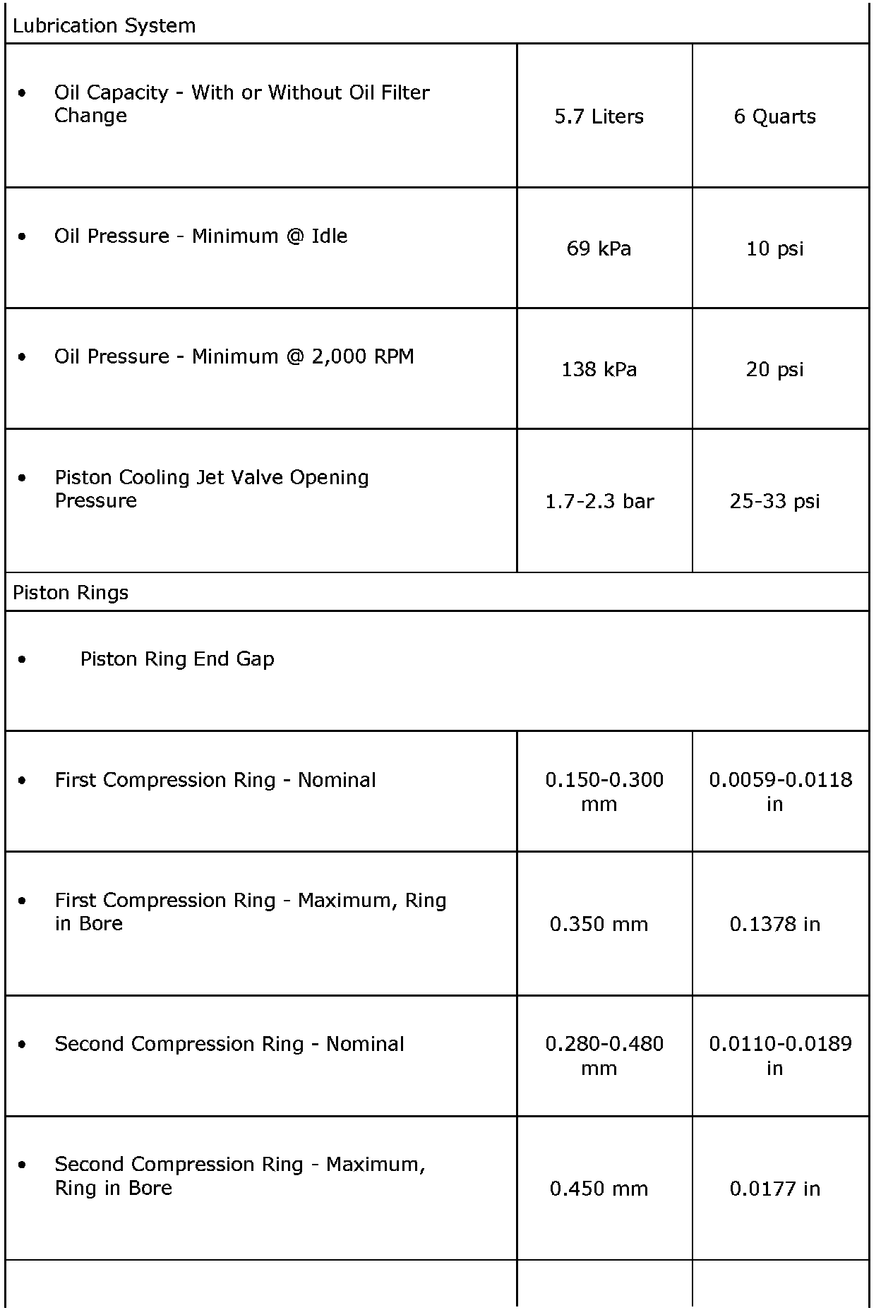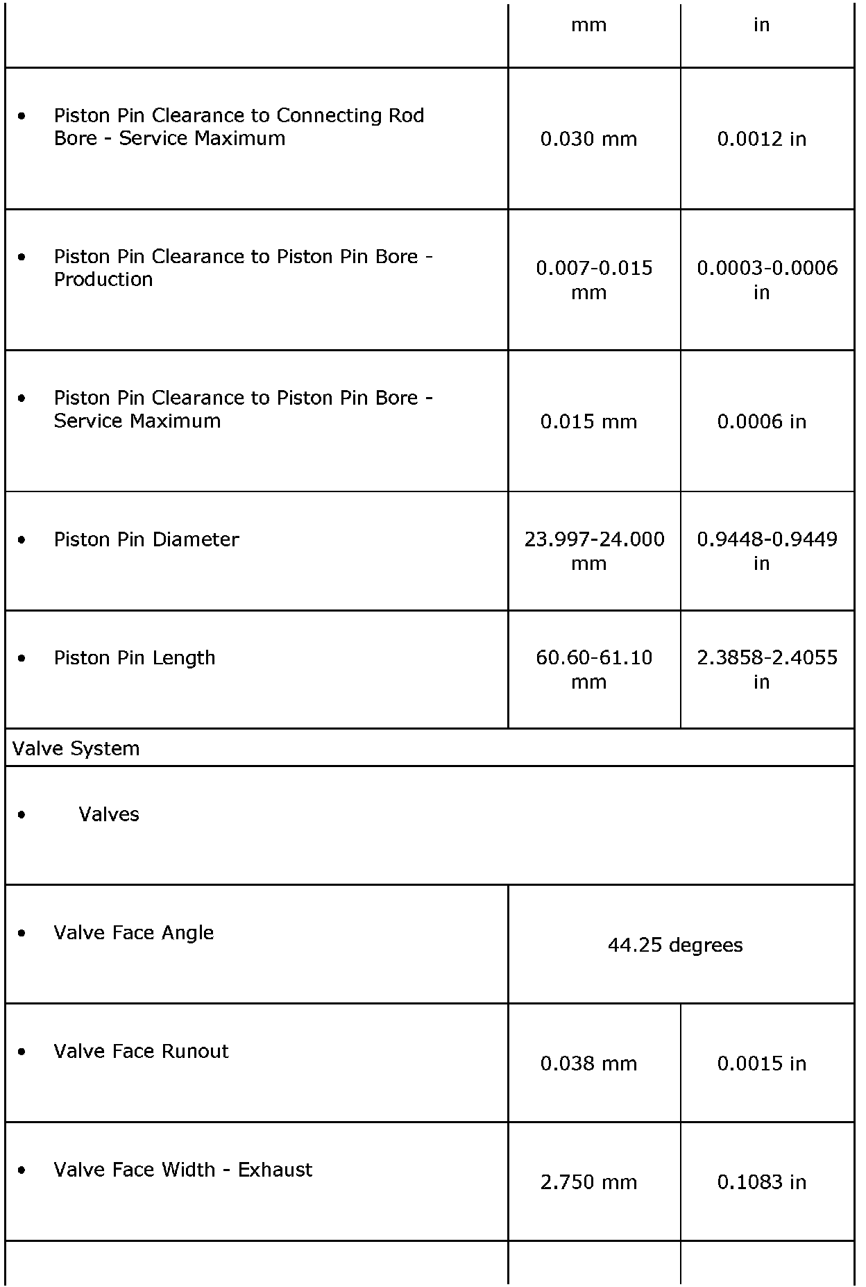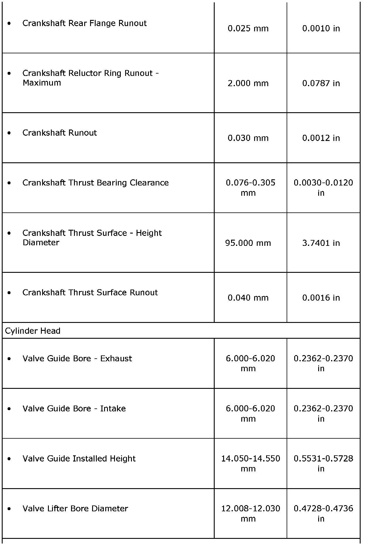 Engine Mechanical Specifications