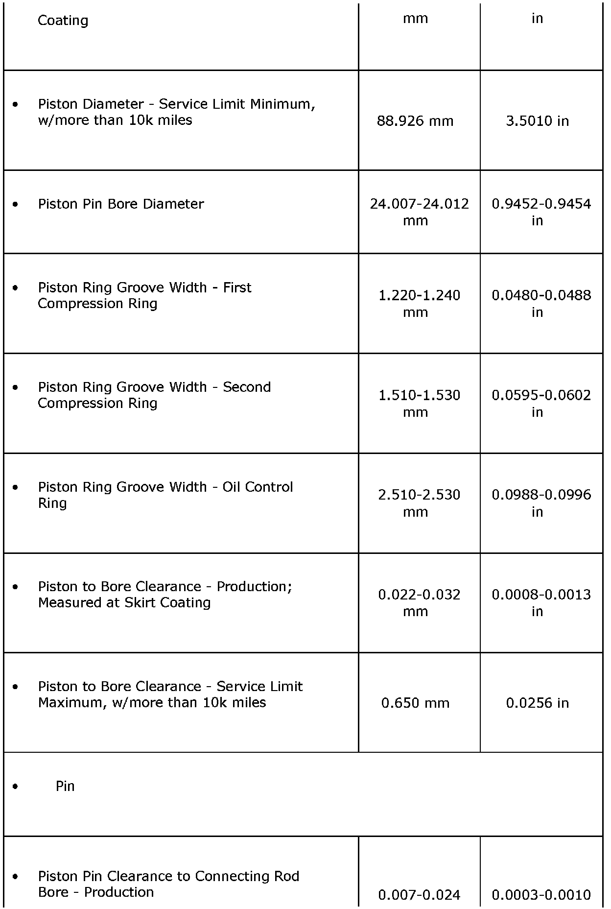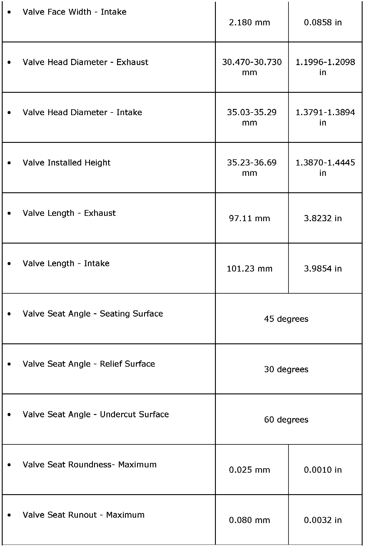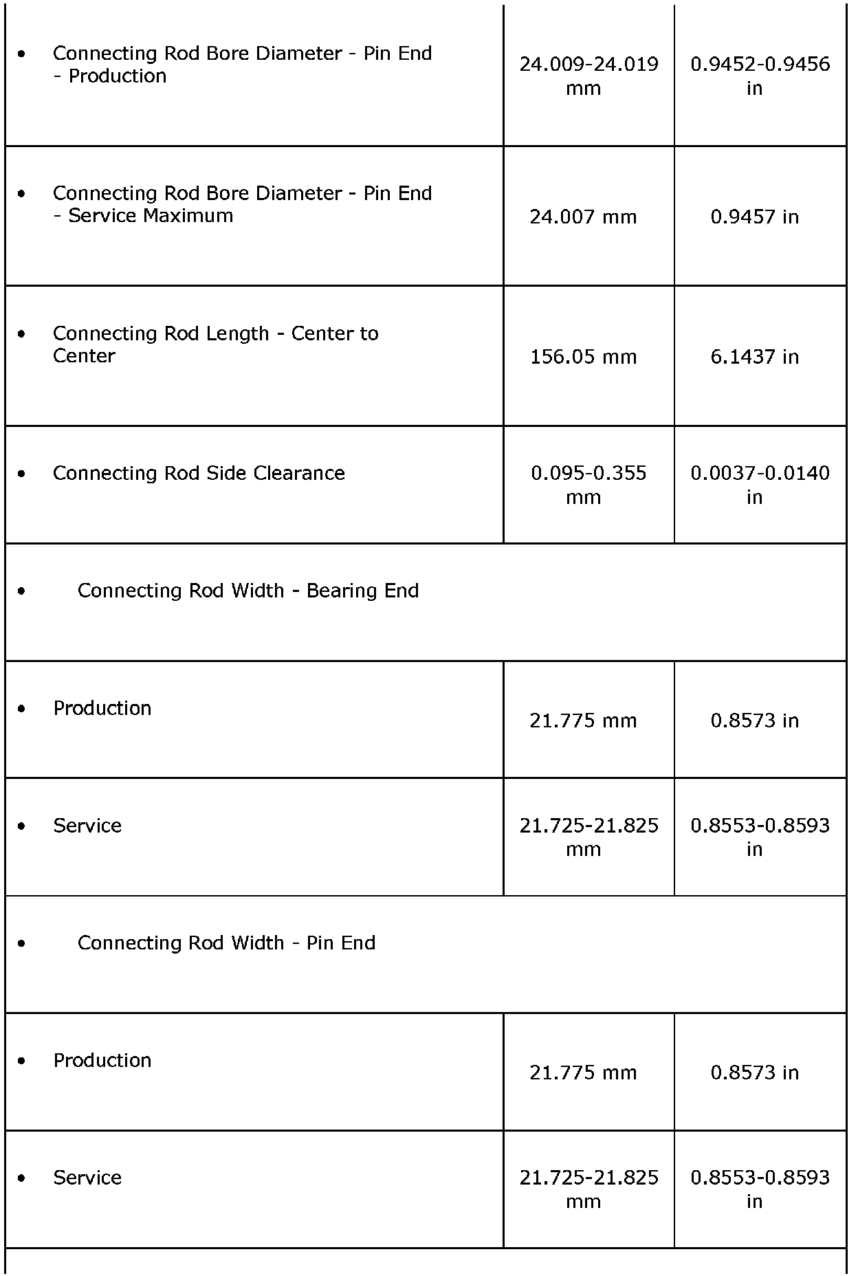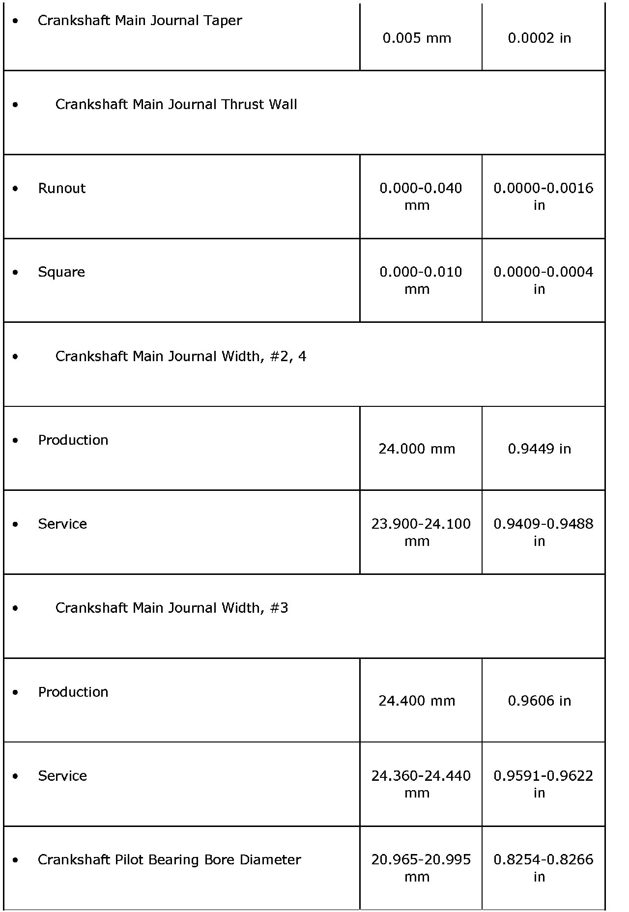 Engine Mechanical Specifications