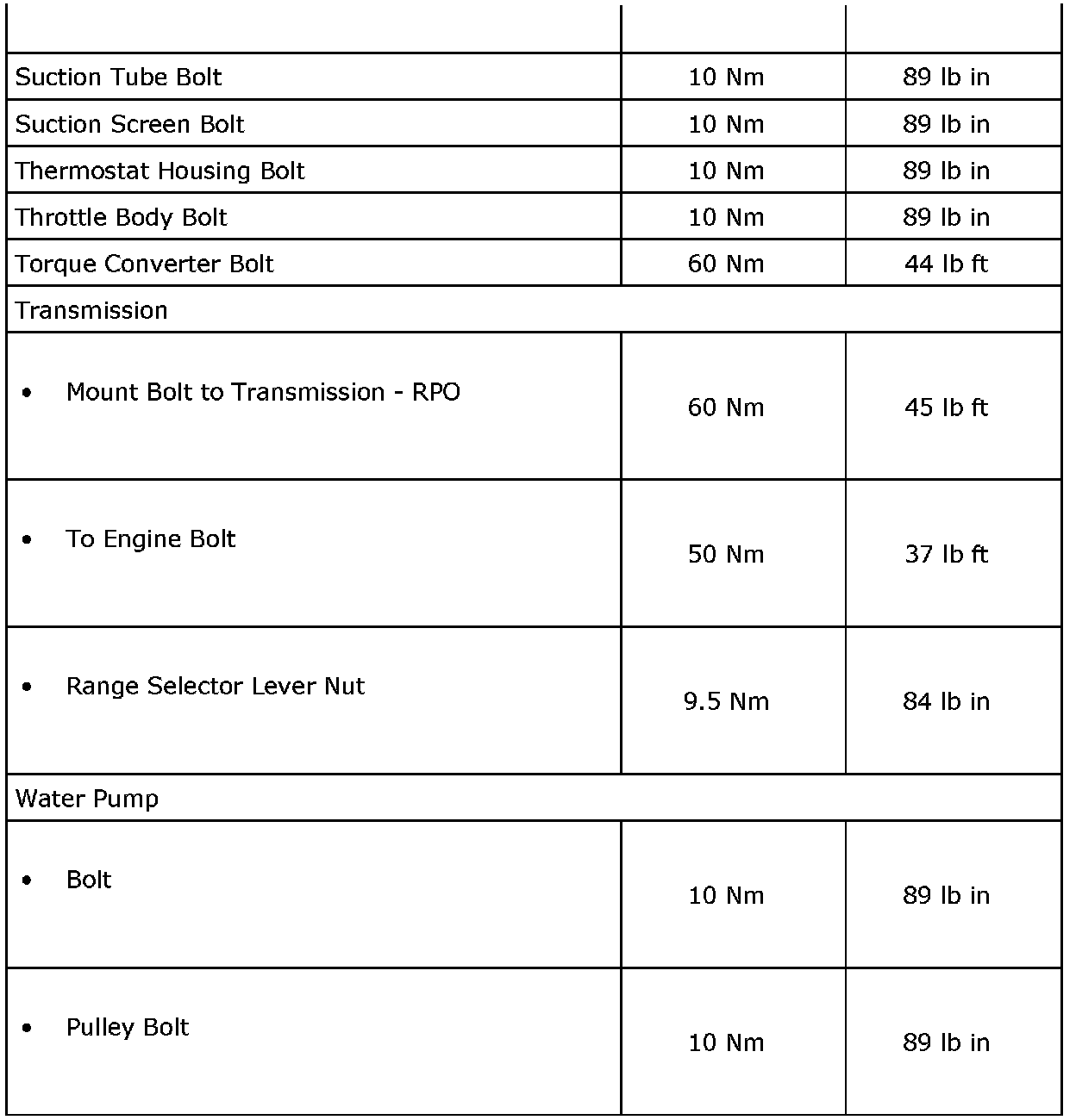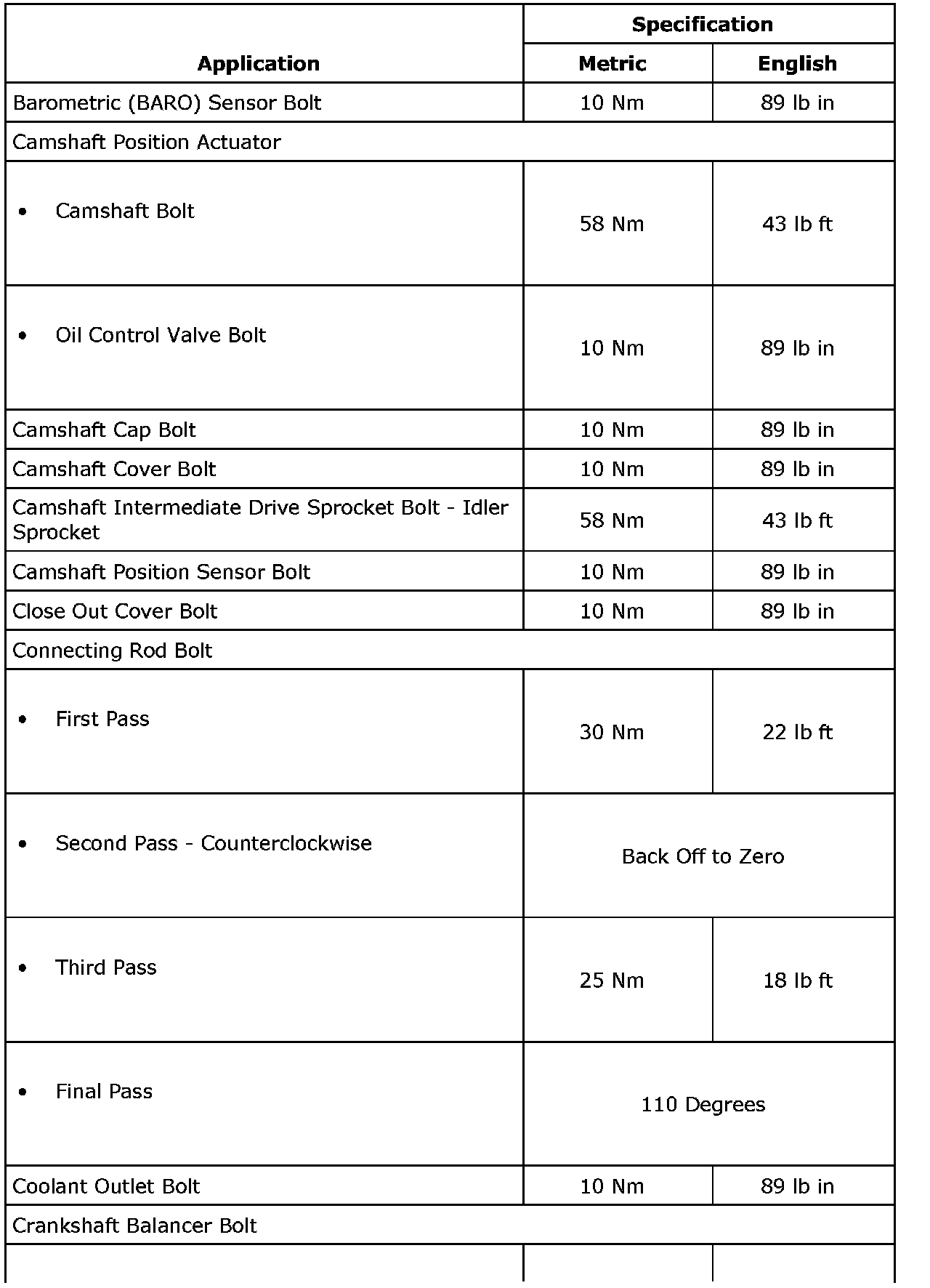 Fastener Tightening Specifications (LF1)