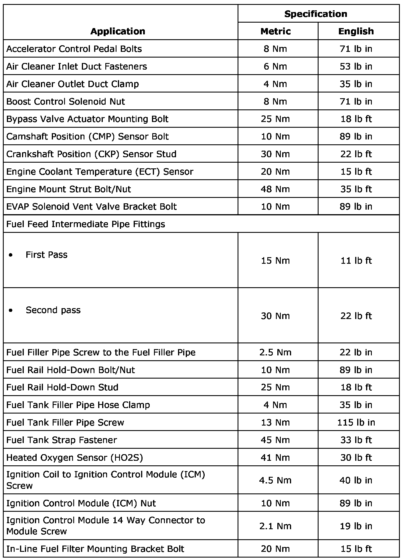 Fastener Tightening Specifications