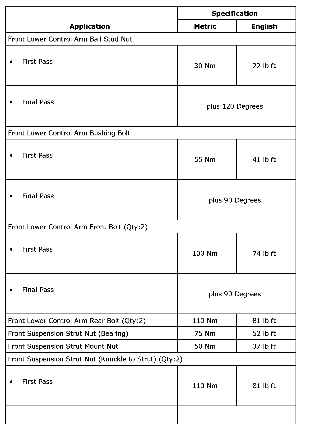 Fastener Tightening Specifications