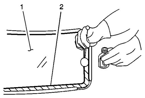 11. Dry fit the window (1) into the opening in order to determine the correct position. Get help from an assistant.