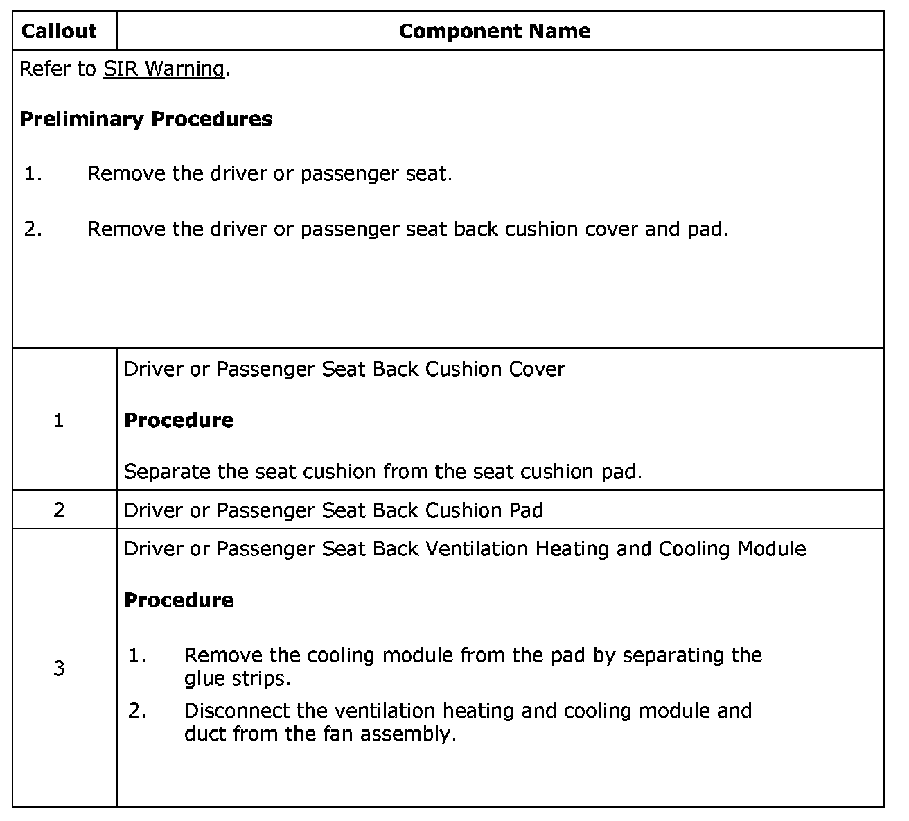 Driver or Passenger Seat Back Ventilation Heating and Cooling Module Replacement