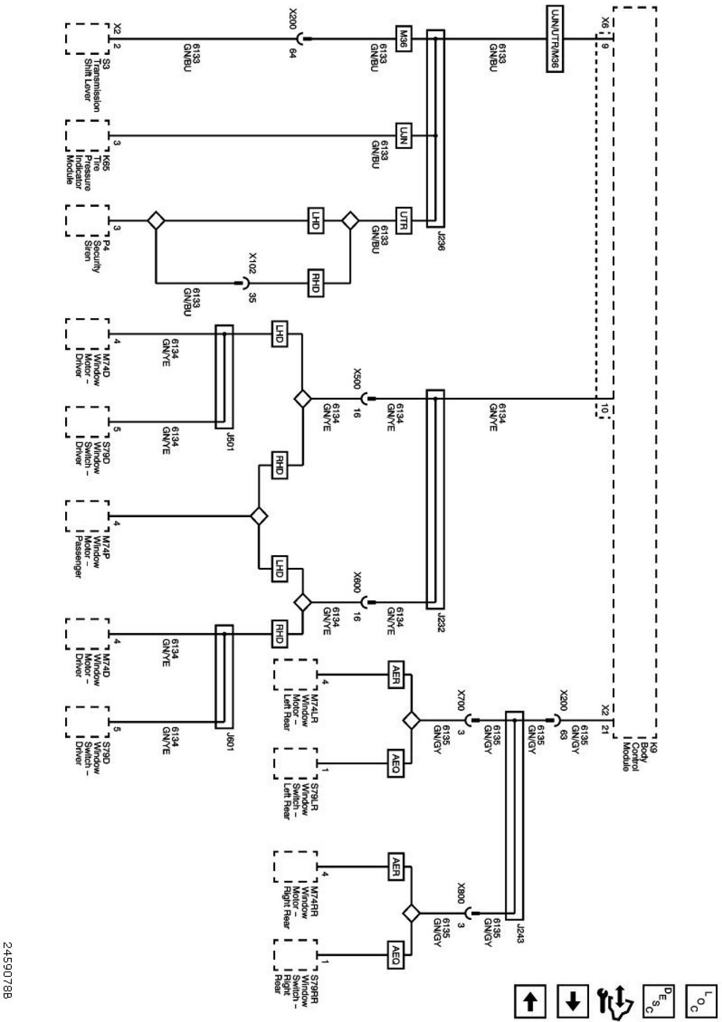 The diagrams for the power supplies that may be feeding this system (+30, +15, +54, +X, and +B) ) can be found at Power and Ground Distribution diagrams.