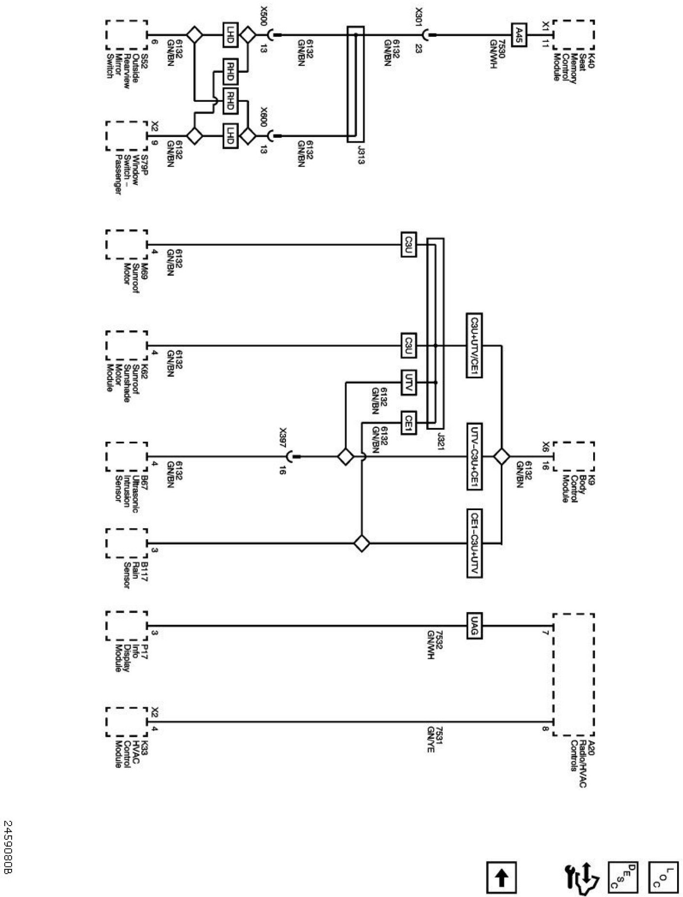 The diagrams for the power supplies that may be feeding this system (+30, +15, +54, +X, and +B) ) can be found at Power and Ground Distribution diagrams.
