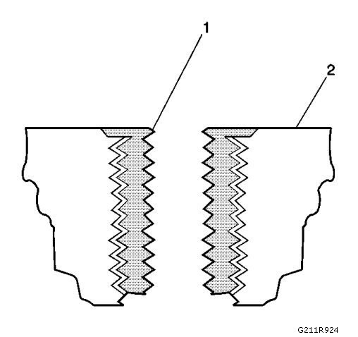 13. Apply threadlock LOCTITE(tm) 277, EN-43600-109 (1), or equivalent to the insert OD threads (2).