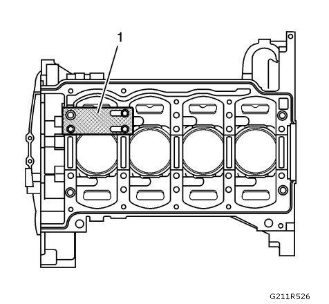 3. Install the fixture plate (1), bolt, and bushing, onto the engine block.