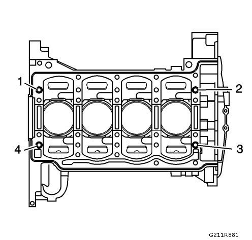 16. Install the alignment dowel pins in holes (1-4), if necessary.