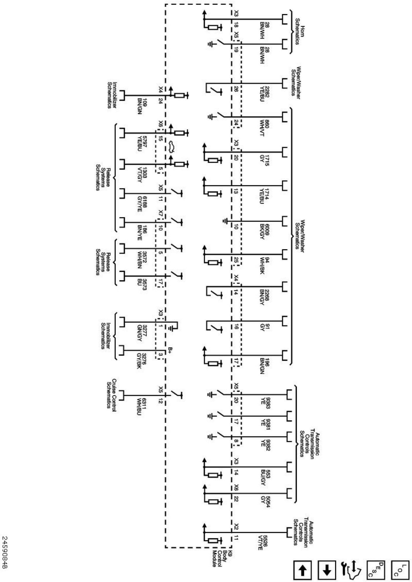 The diagrams for the power supplies that may be feeding this system (+30, +15, +54, +X, and +B) ) can be found at Power and Ground Distribution diagrams.