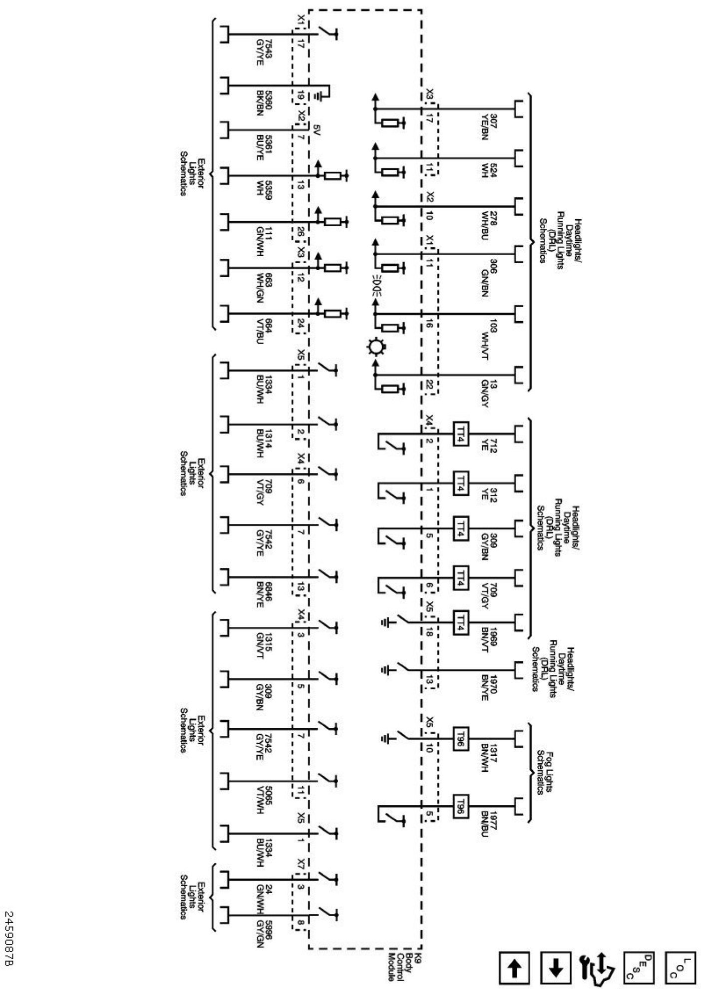 The diagrams for the power supplies that may be feeding this system (+30, +15, +54, +X, and +B) ) can be found at Power and Ground Distribution diagrams.