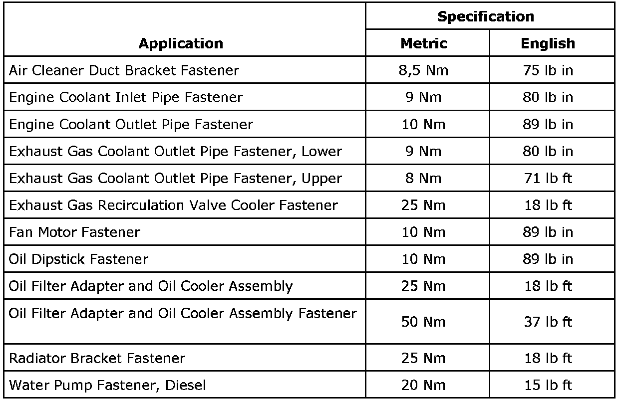 Fastener Tightening Specifications