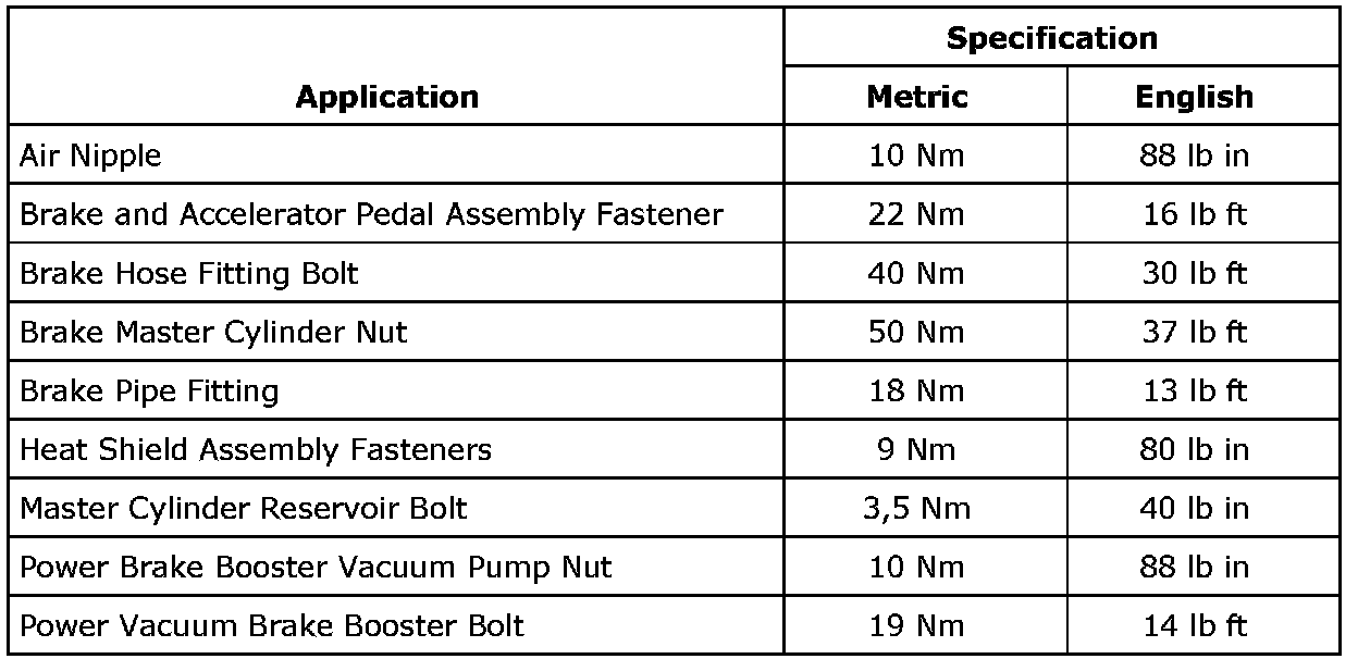 Fastener Tightening Specifications