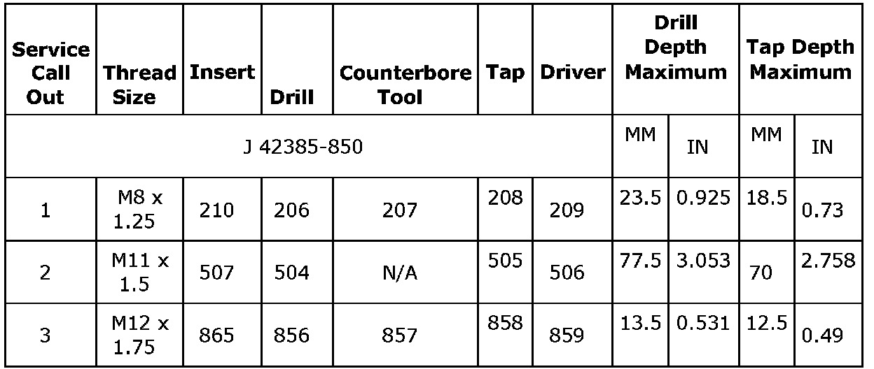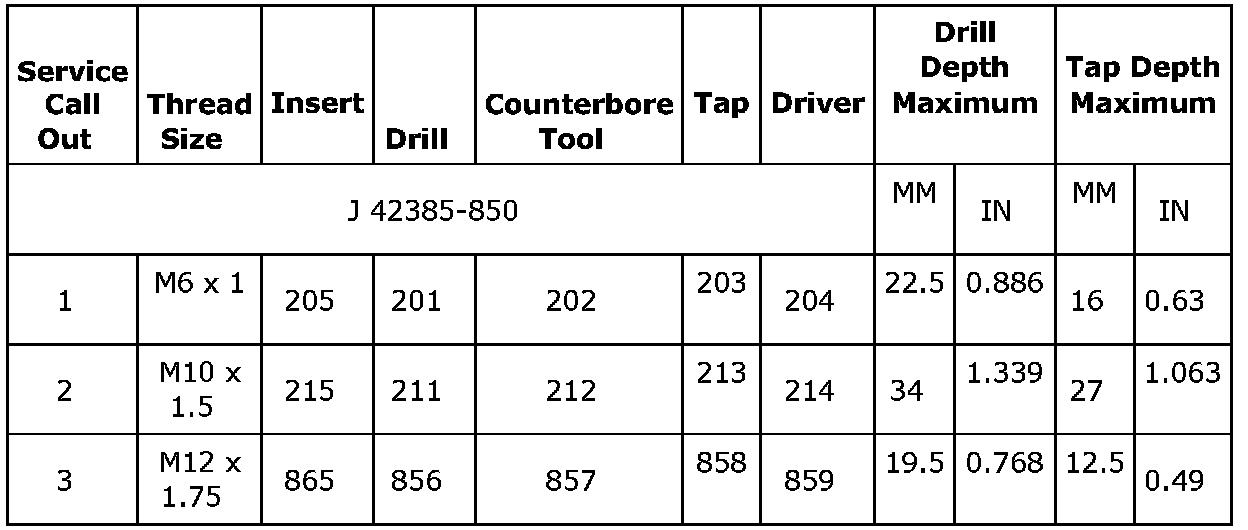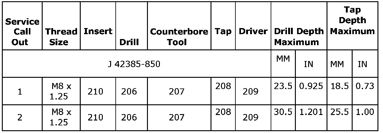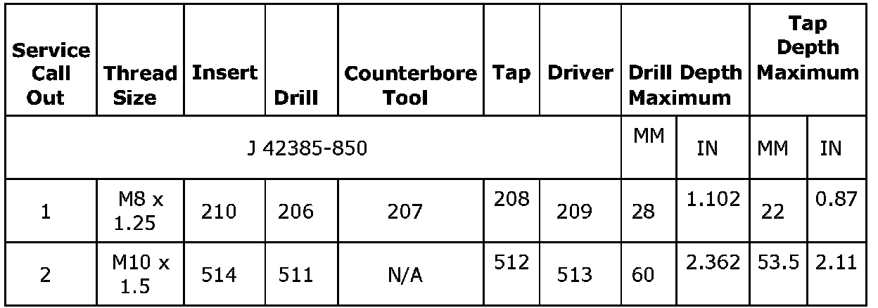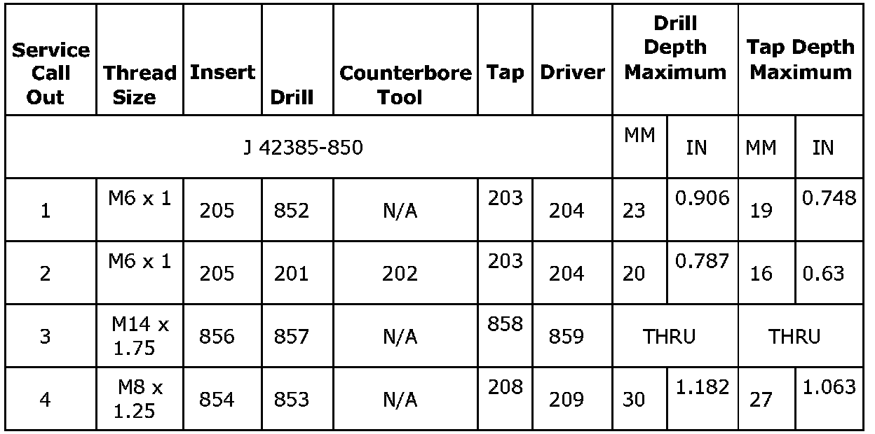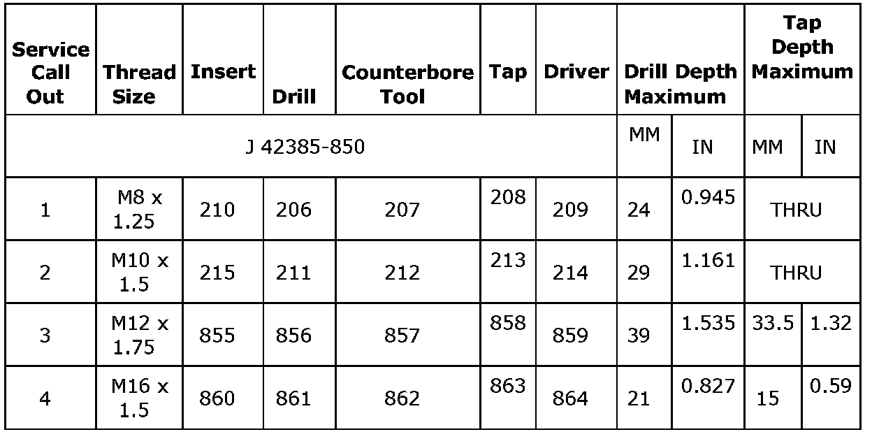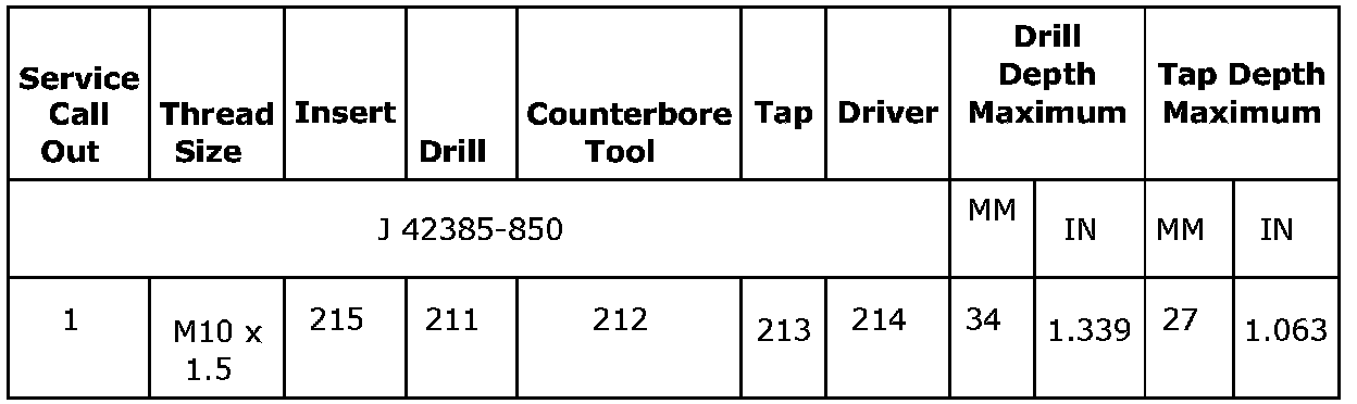Thread Repair Specifications (LDK, LHU)Engine Block - Front View