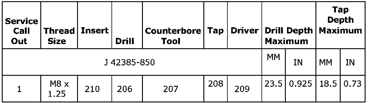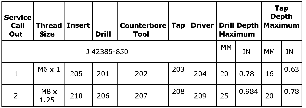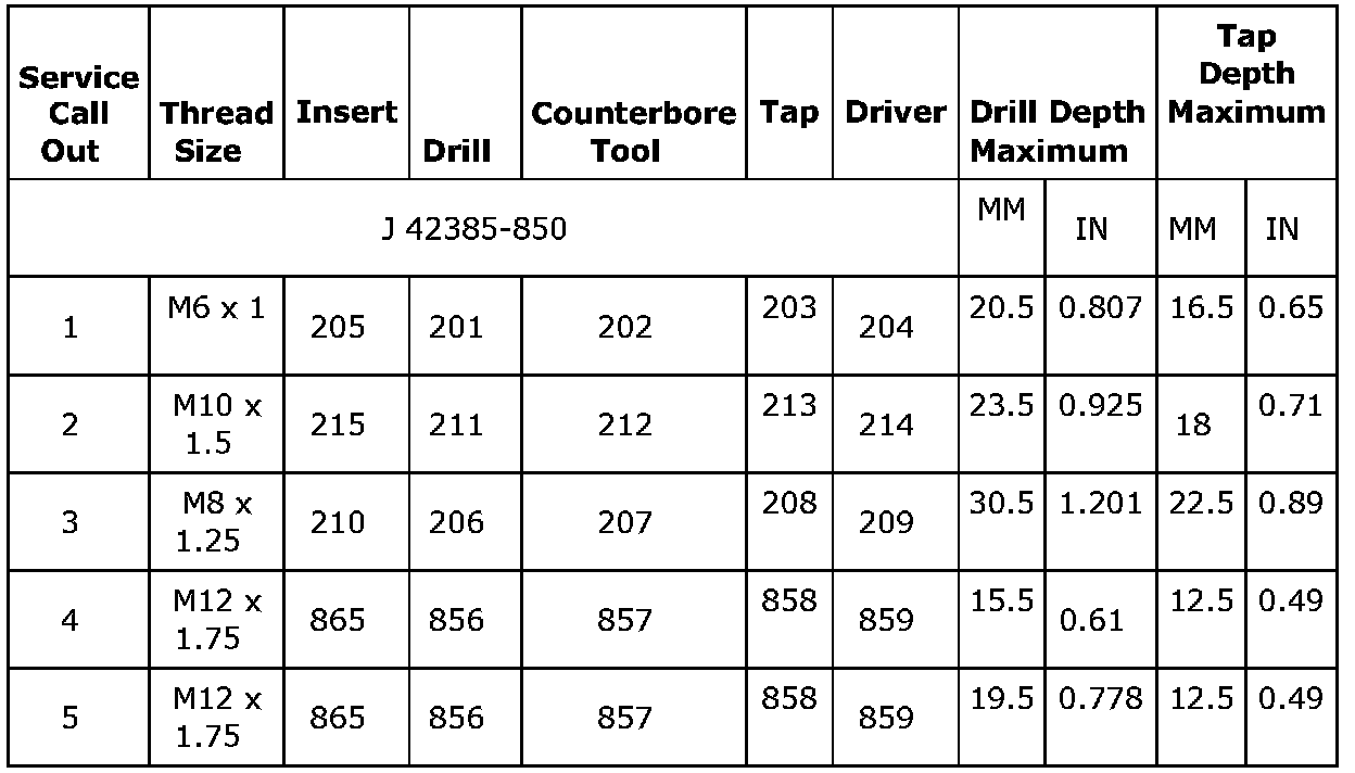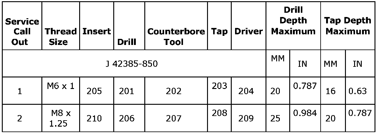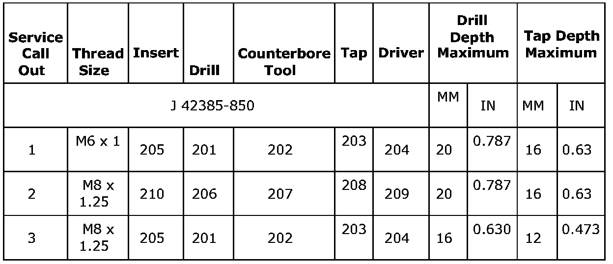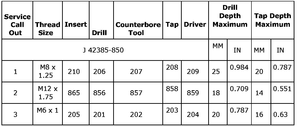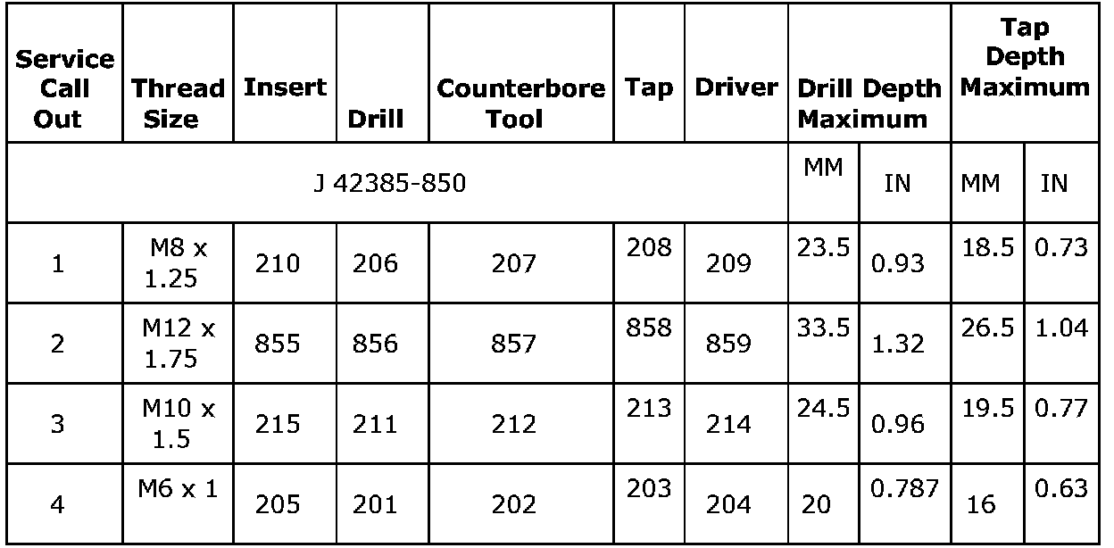 Thread Repair Specifications (LDK, LHU)Engine Block - Front View