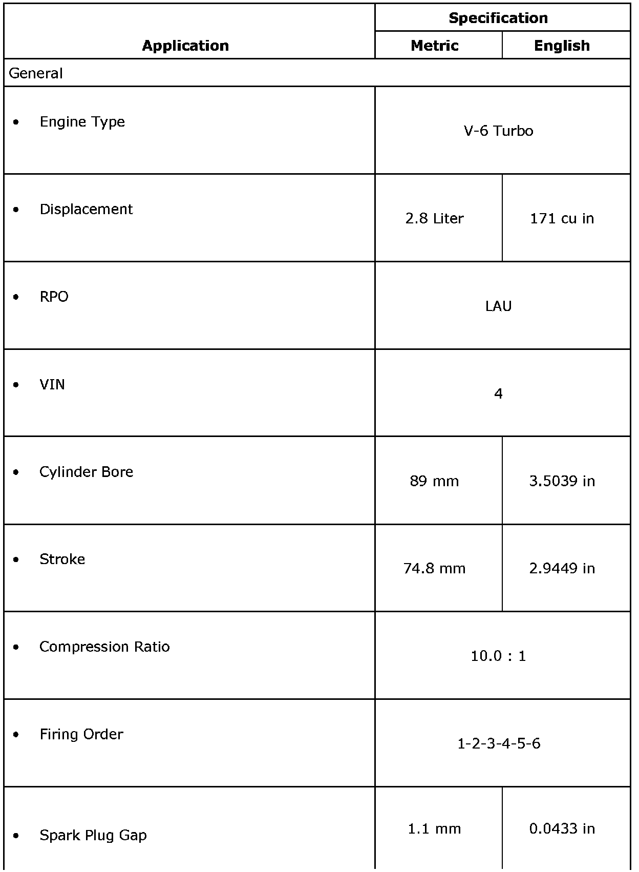 Engine Mechanical Specifications (LAU or LBW)