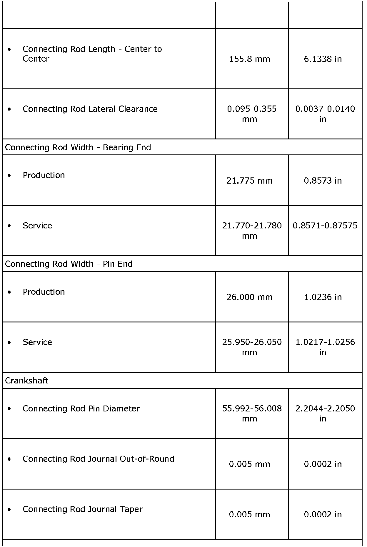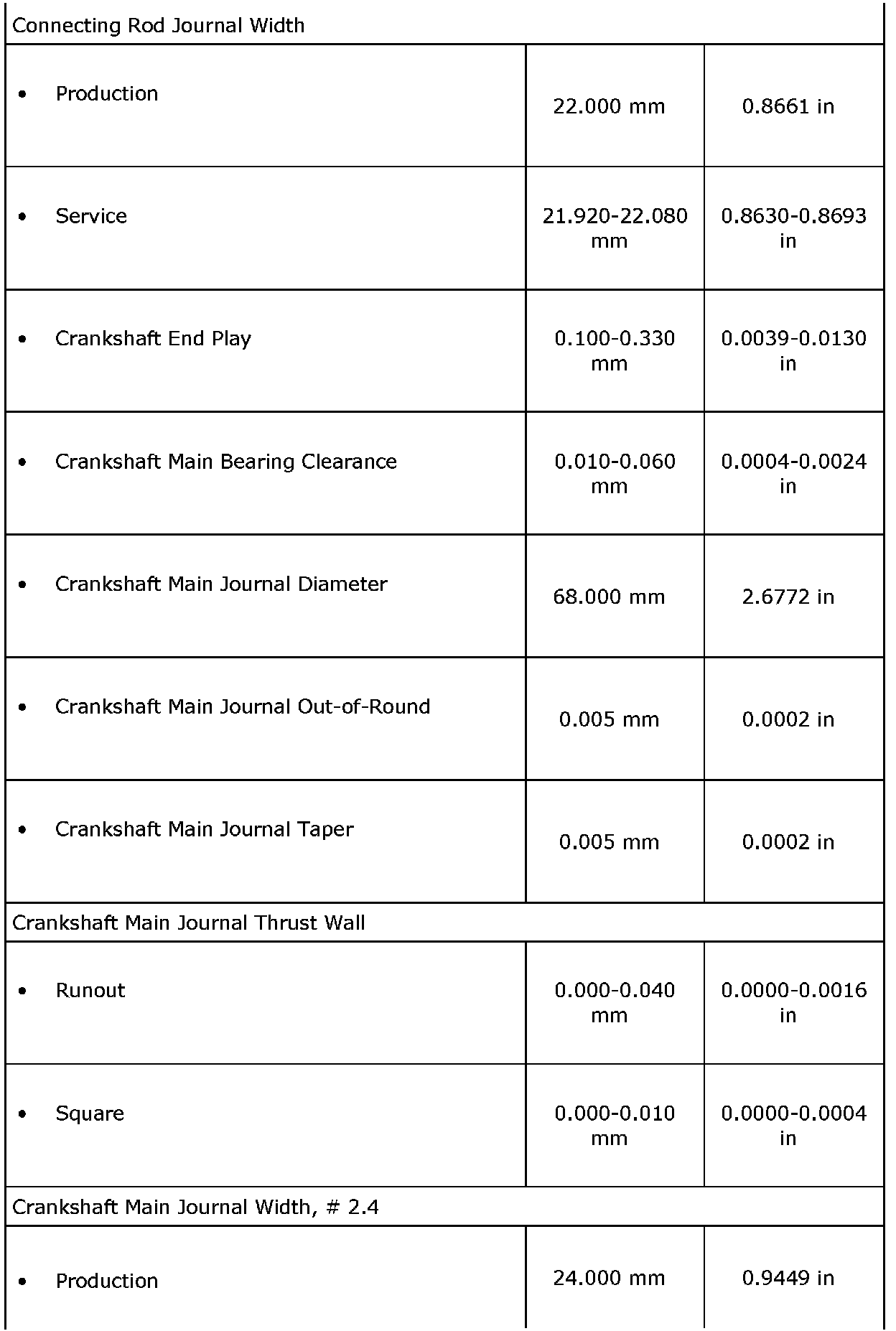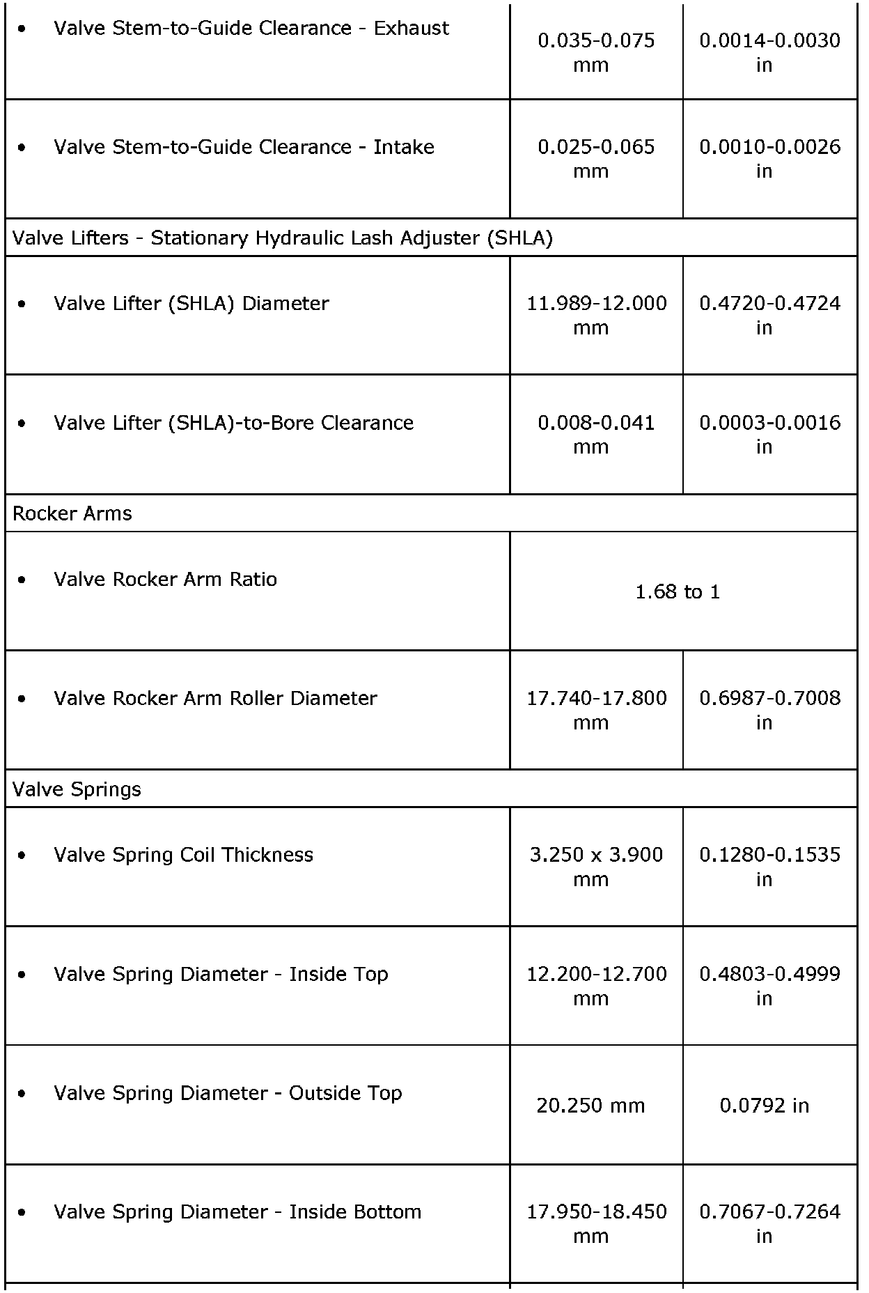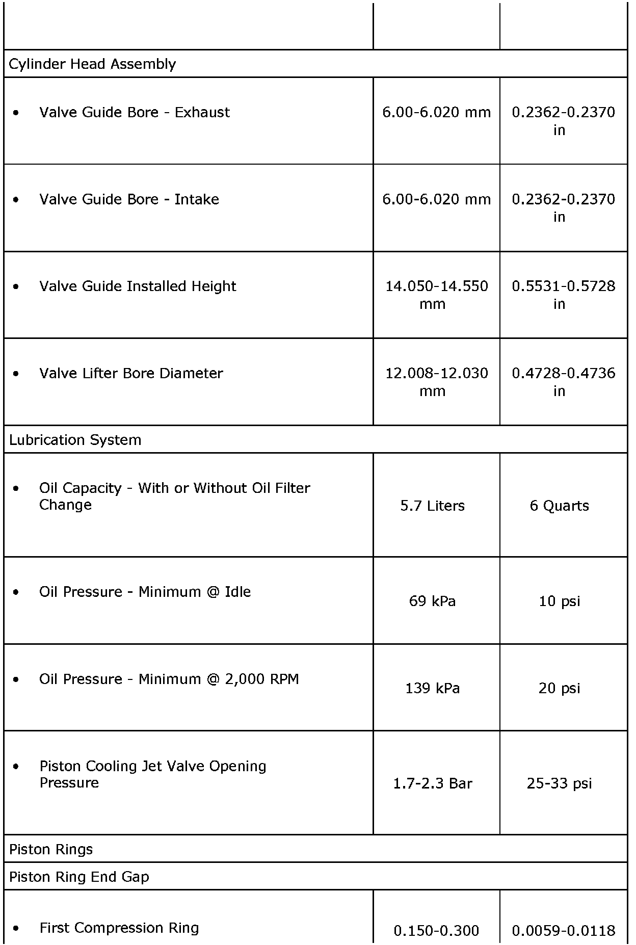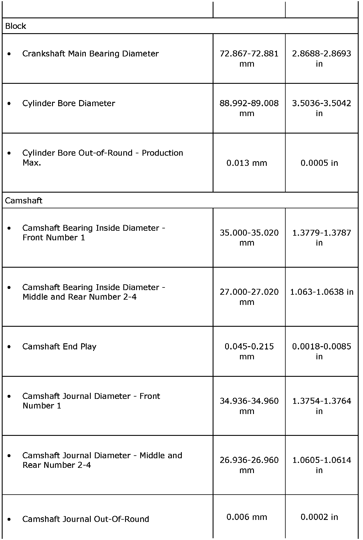 Engine Mechanical Specifications