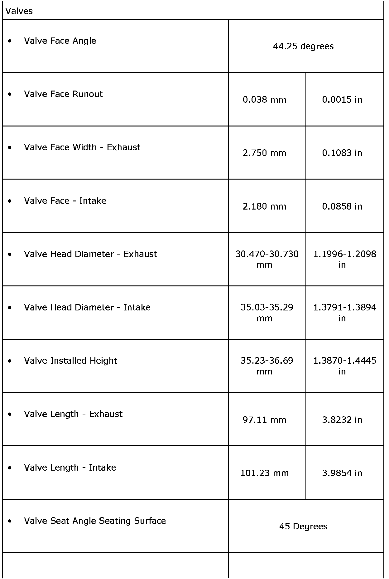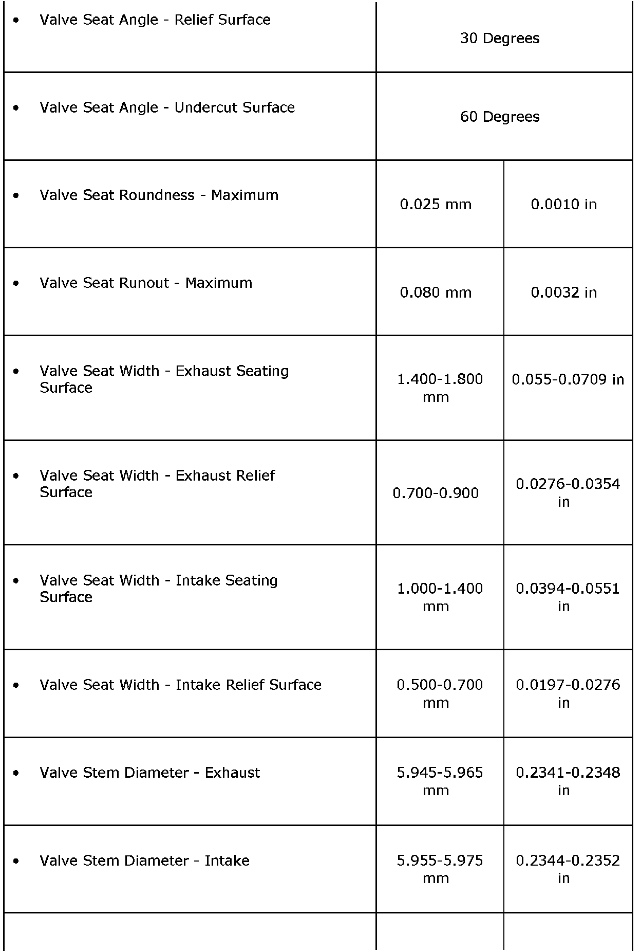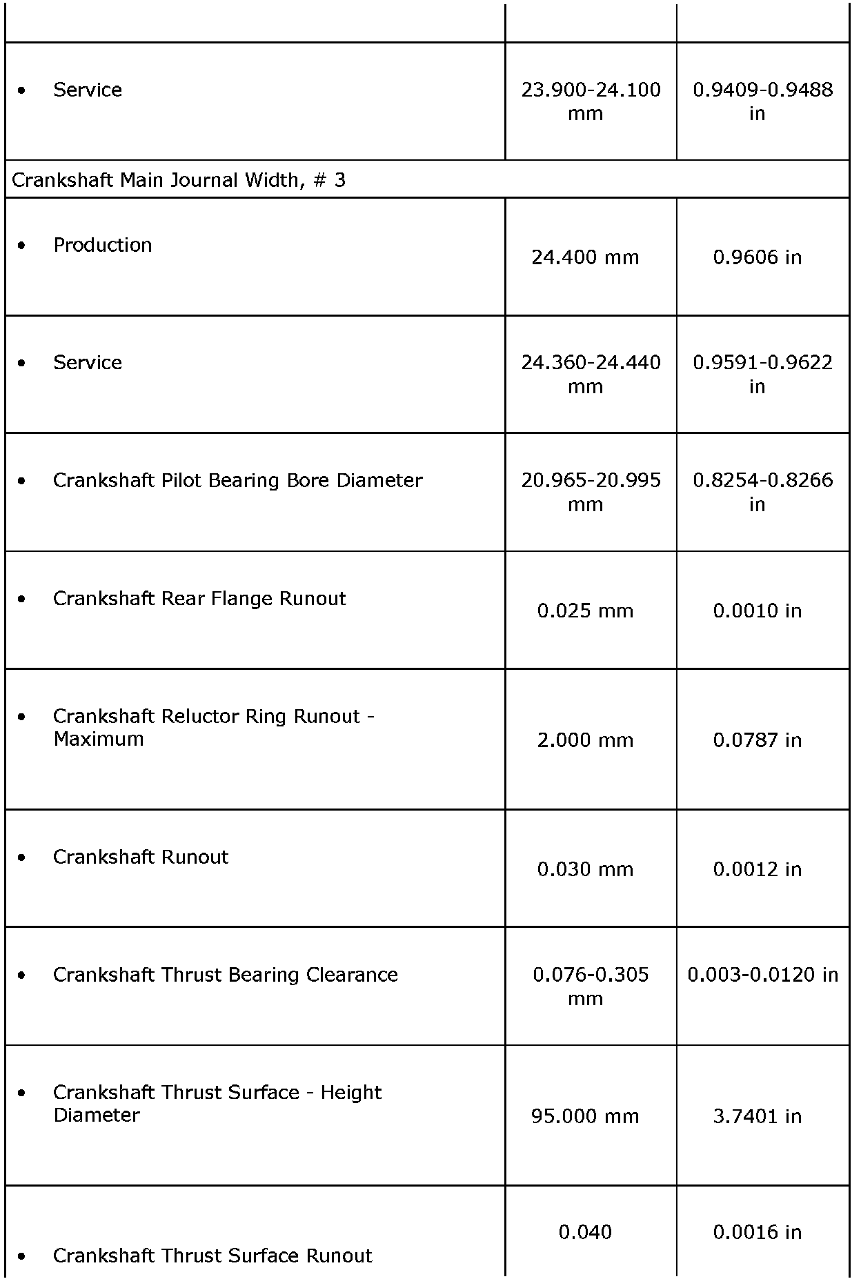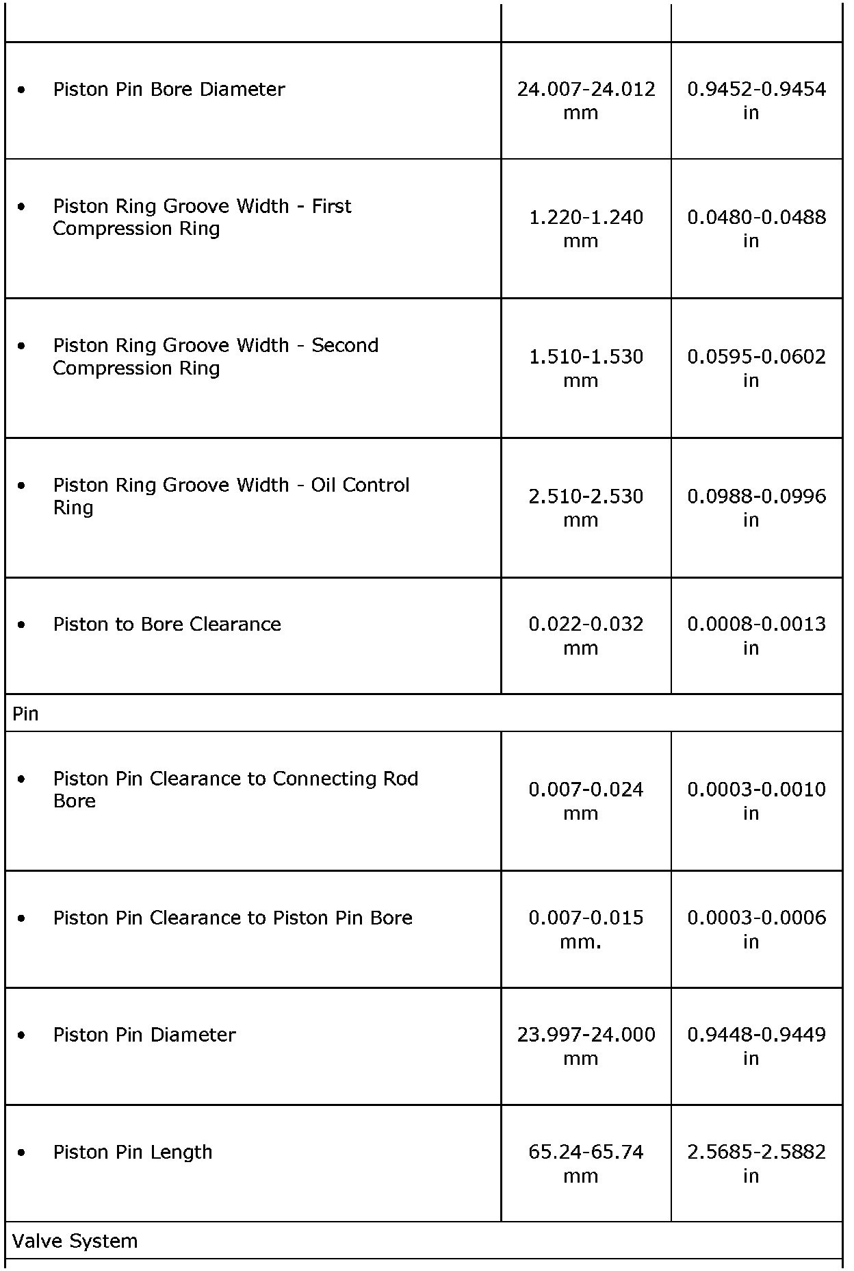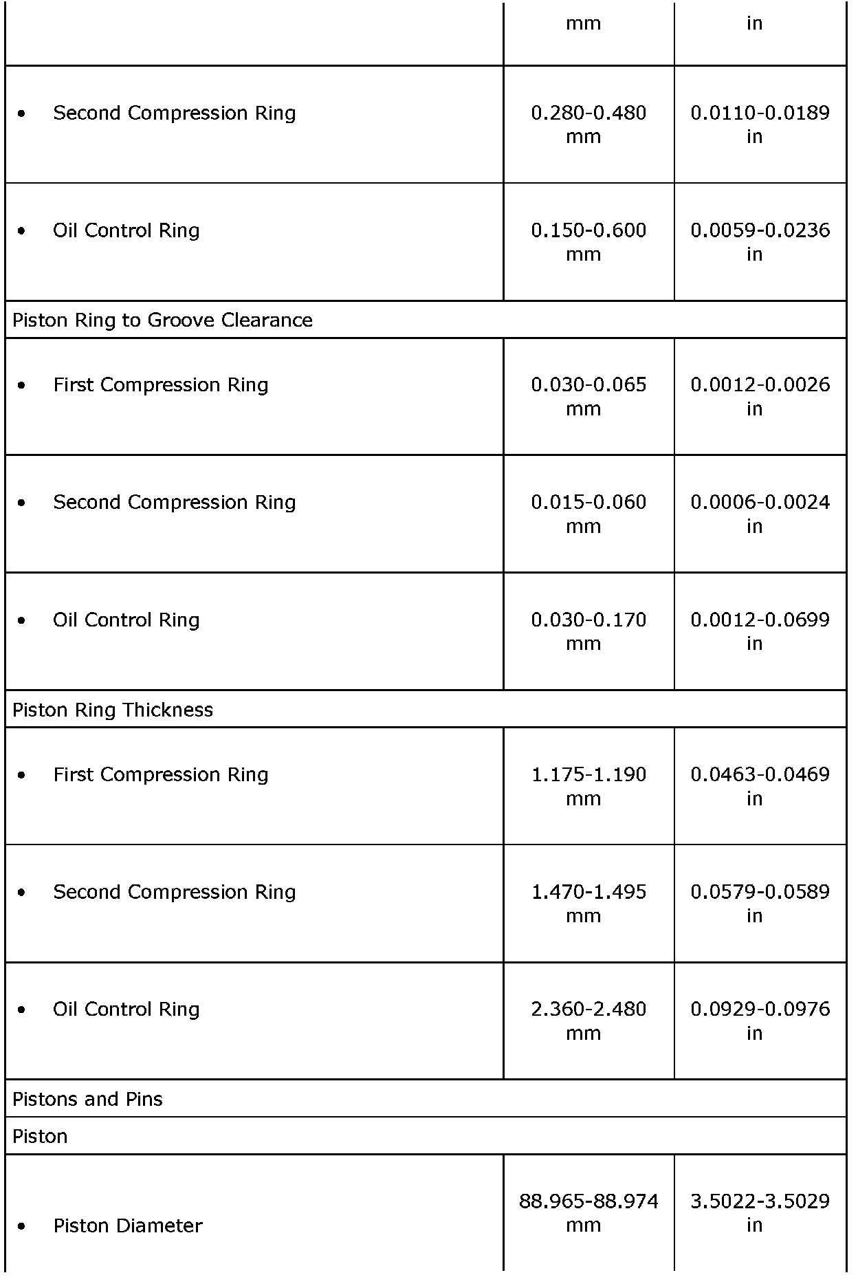 Engine Mechanical Specifications