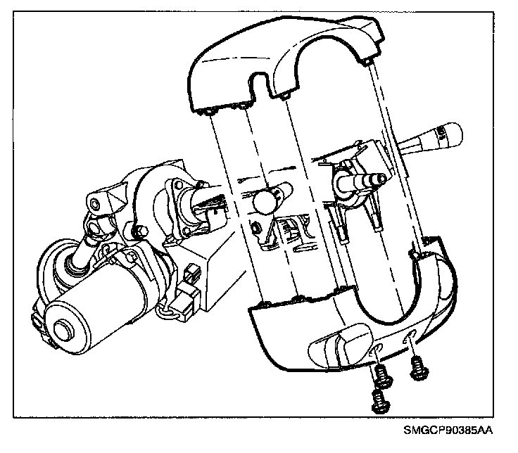 4. Install steering column upper and lower shrouds and shroud fasteners.