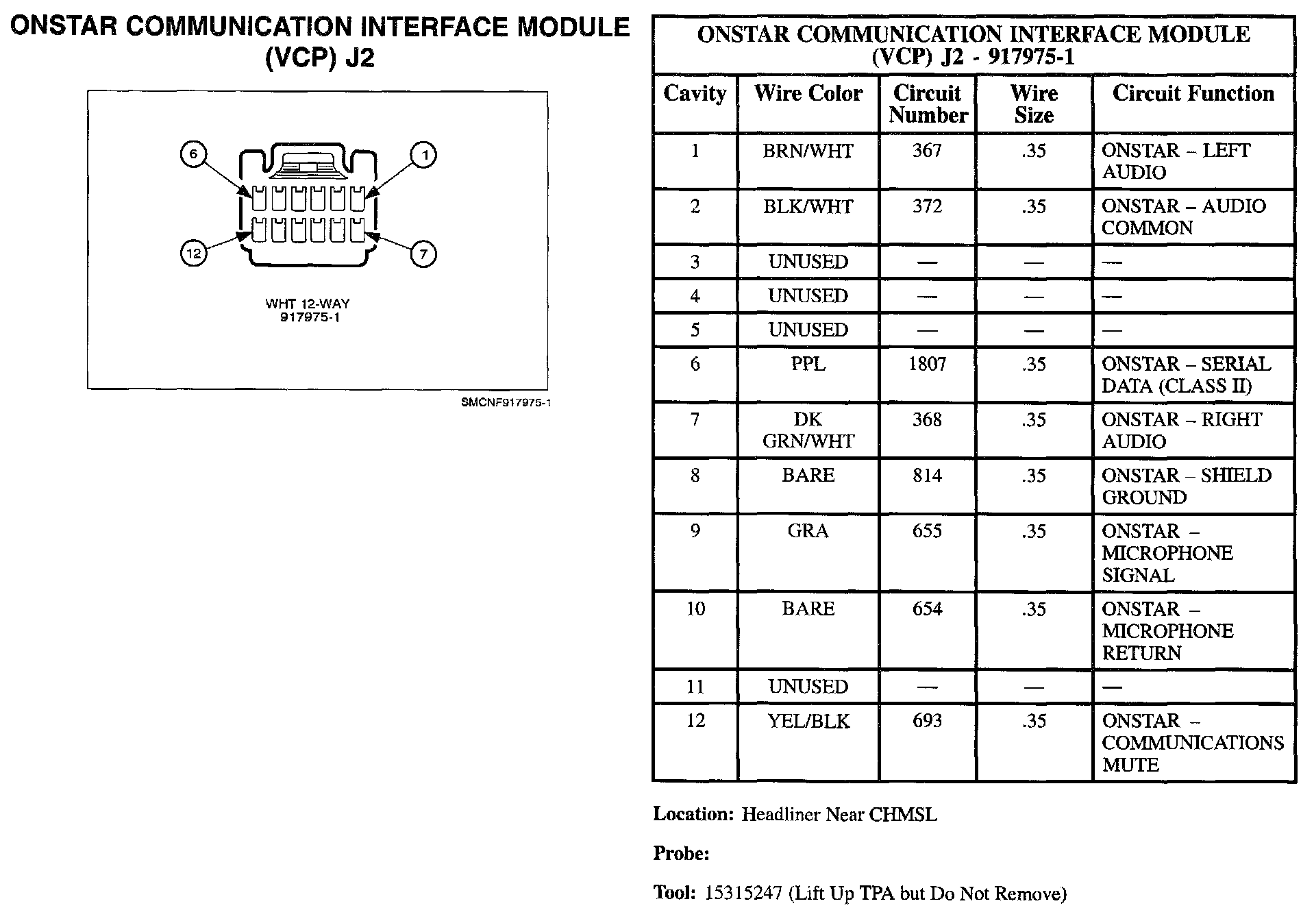 Onstar Communication Interface Module (VCP) J2: