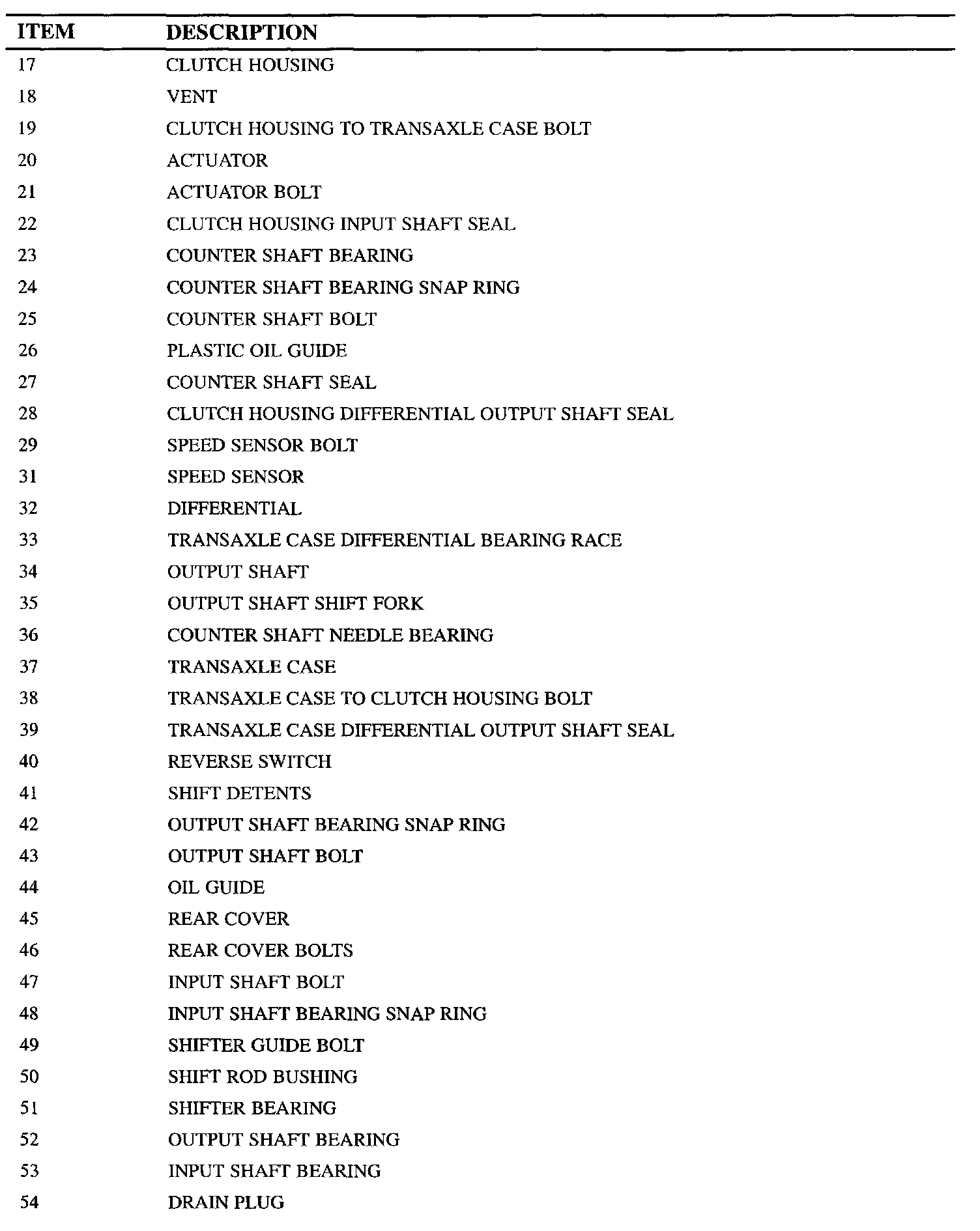 OUTPUT SHAFT COMPONENTS
