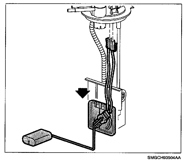 Fuel level information is accomplished by using two variable resistance fuel level sensors in series, which vary resistance according to changes in the level of fuel in the fuel tank. The ECM supplies a 5 volt reference through a pull-up resistor to the primary fuel level sensor, which is part of an assembly to the primary fuel pump module (right side of fuel tank). The primary fuel level sensor is electrically connected to the secondary fuel level sensor, which is part of an assembly to the secondary fuel pump module (left side of fuel tank). The secondary fuel level sensor is connected to ground. When the level of fuel in the fuel tank is high, each sensor resistance is low (low voltage on signal line). As the fuel level decreases, the sensor resistances increase (higher voltage on signal line). The ECM monitors the fuel level sensor signal voltage to determine fuel tank level. The fuel level sensor signal voltage ranges between 400 mV to 2.5 volts with each sender arm at the highest and lowest positions.