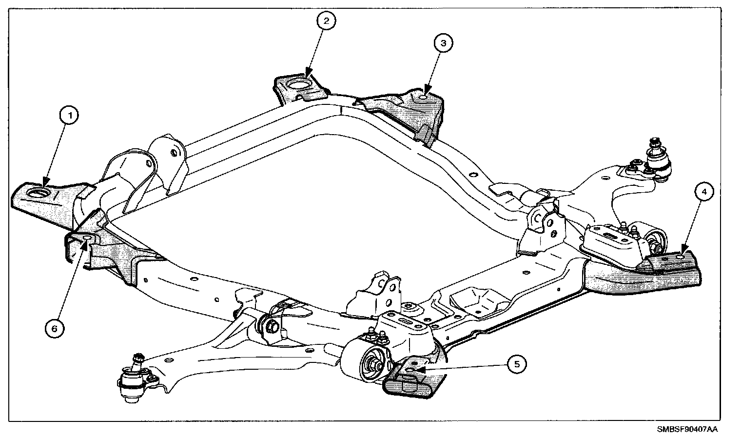 FRONT CRADLE ASSEMBLYNOTE: Repair of cradle could result in damage to the vehicle, degrade the performance and/or safety of the vehicle after repair.