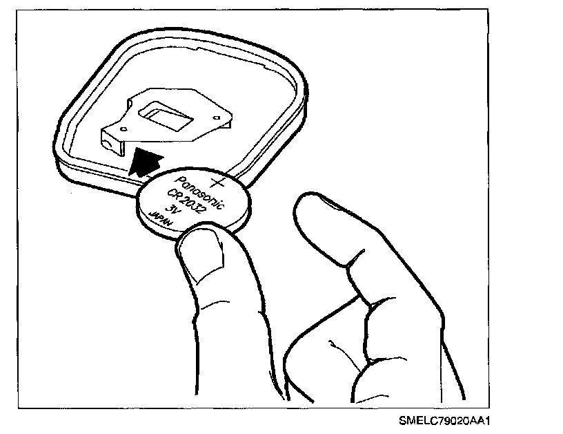 IMPORTANT: If the transmitter(s) won't work, perform the "RKE SYSTEM CHECK" before replacing the battery. Also, before replacing the battery in the transmitter(s), make sure that the battery is touching both the negative and positive contacts inside of the transmitter(s).